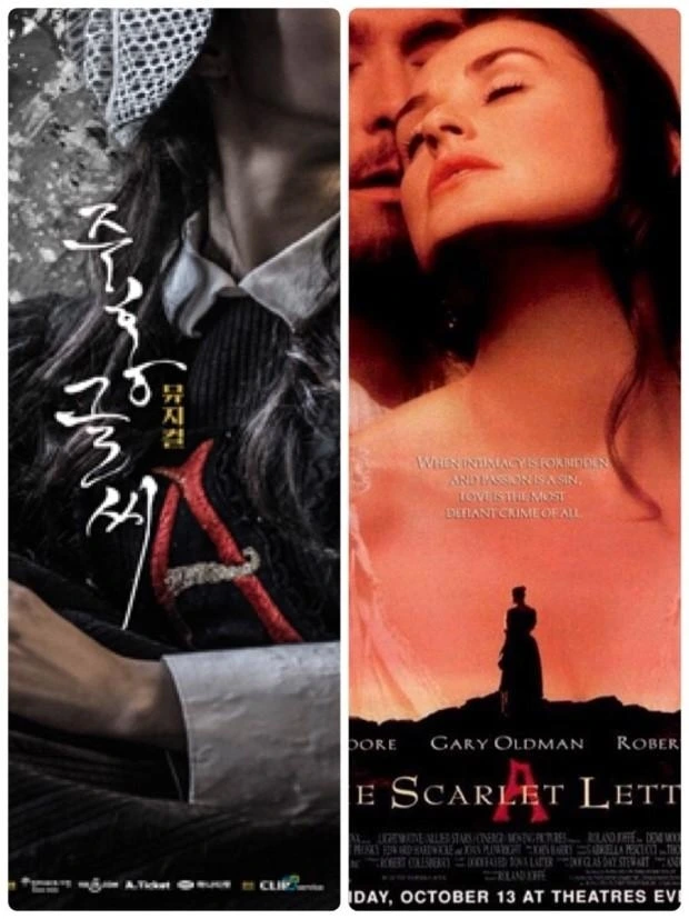미국의 대표적 작가 너대니얼 호손의 [주홍 글씨]는 17세기 중엽 청교도 식민지 미국 보스턴에서 일어난 간통 사건을 다룬 이야기이다. 헤스터 프린이라는 젊은 여인은 나이 든 의사 칠링워스와 결혼했지만 미국에 먼저 들어와 살다가 펄이라는 사생아를 낳게 된다. 청교도 사회에서 간통한 벌로 가슴에 'A'(adultery) 자를 달고 살아가나 펄의 아버지가 누구인지는 결코 말하지 않는다. 상대는 마을의 목사 딤즈데일이지만 그도 양심의 가책은 느끼면서도 헤스터를 외면한 위선적인 생활을 이어가게 된다. 그러나 이 사실을 알게 된 칠링워스는 그에게 정신적인 고통을 주게 되고 결국 딤즈테일은 죄책감으로 점점 쇠약해져 간다. 7년이 지난 어느 날 딤즈테일은 자신의 죄를 많은 사람들 앞에서 고백하고 헤스터와 펄에게 자신의 가슴에 깊게 새겨진 ‘A’를 보여주며 죽게 된다.