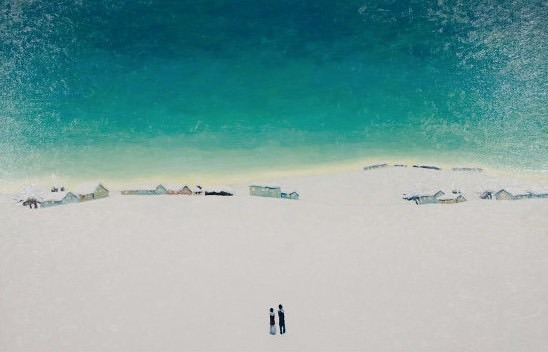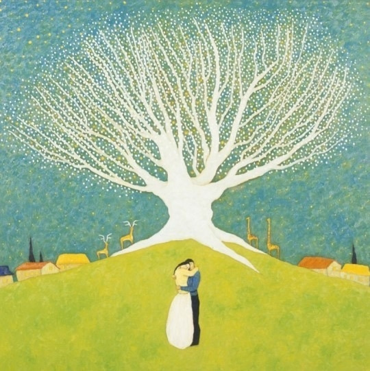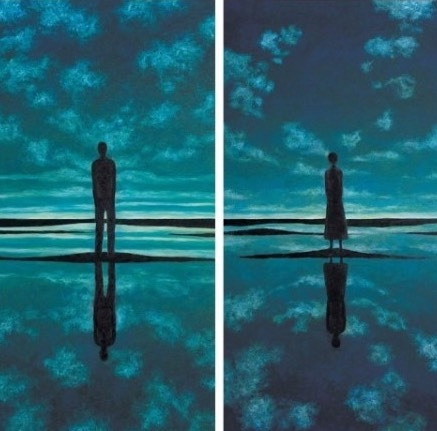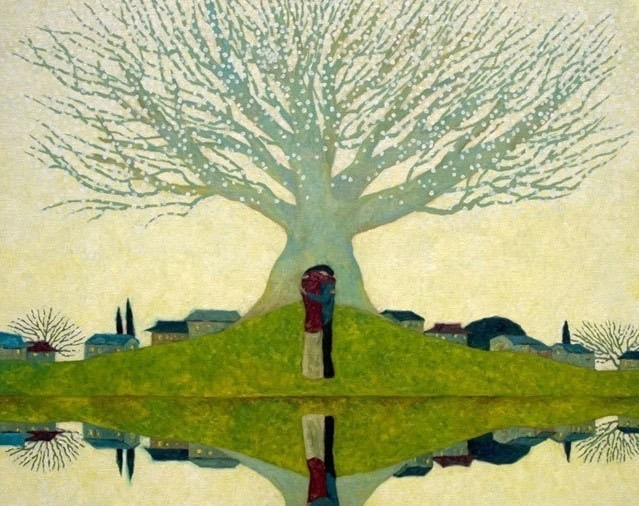 다정한 포옹과 반영된 풍경은 절대고독의 외로운 존재인 우리에게