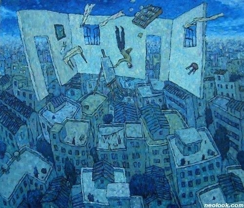 다크한 블루톤은 다소 암울한 현실을 상징하지만