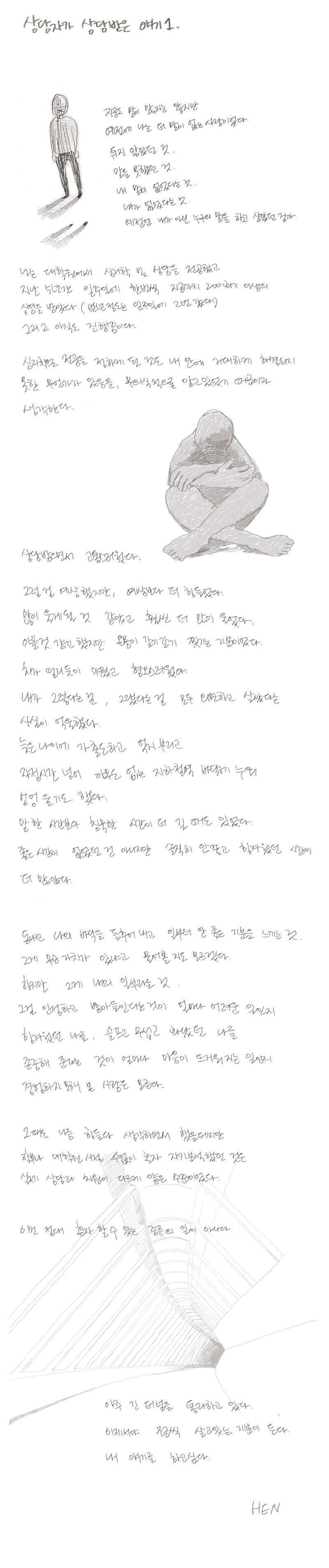 상담자이면서 내담자입니다. 상담받은 경험을 글쓰고 그립니다. 개인상담소 [마음과 공간 심리상담센터]를 운영하고 있습니다.
