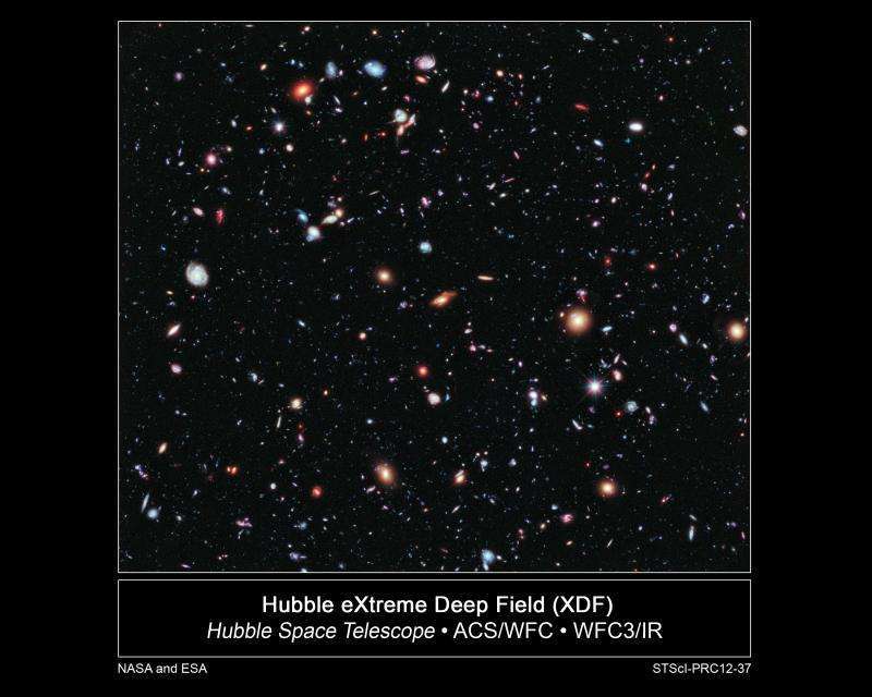그러나 모두가 미친 짓이라 했던 이 프로젝트의 결과는 세계 천문학계를 뒤집을 정도로 큰 사건이 되었습니다. 아무것도 없는 빈, 그것도 테니스공 만한 작은 면적(지상에서 육안으로 관측할 수 있는 하늘 면적의 1/24,000,000)을 찍은 사진에, 은하 약 3000여 개가 담겨있었거든요.