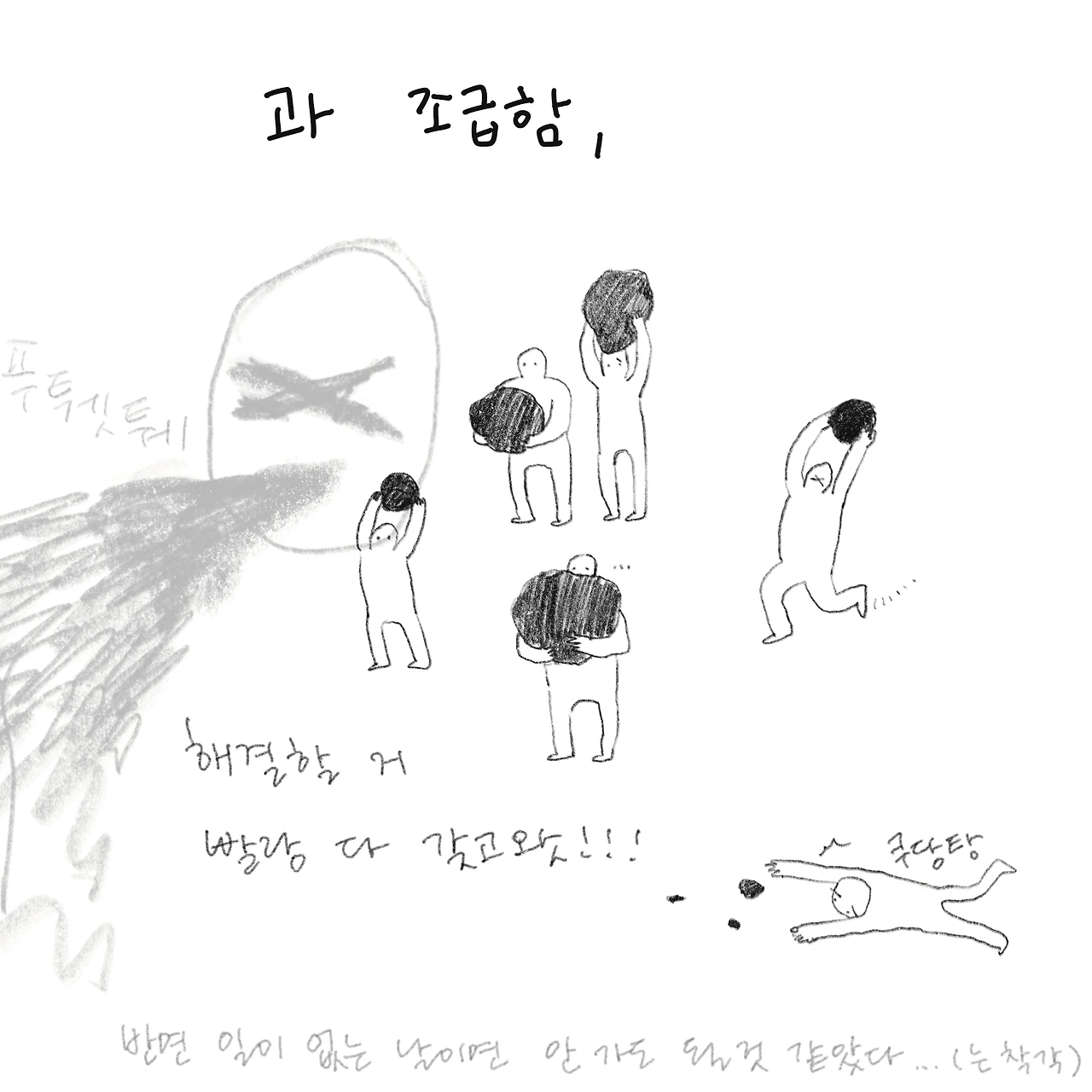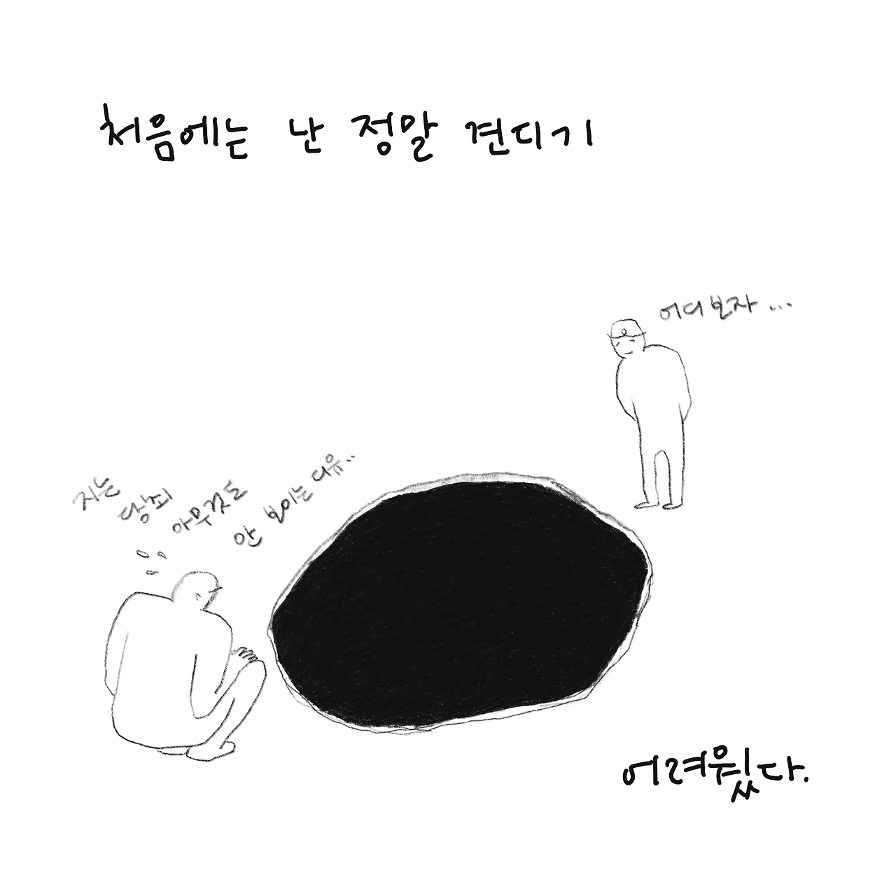 결국 하고 넘어가야 했을 생각이었겠지.. 싶으면서도 나는 여전히 당시의 내가 답답해서 견딜 수가 없는가보다. 계속 비슷한 내용의 그림을 그리고 있는 걸 보면..