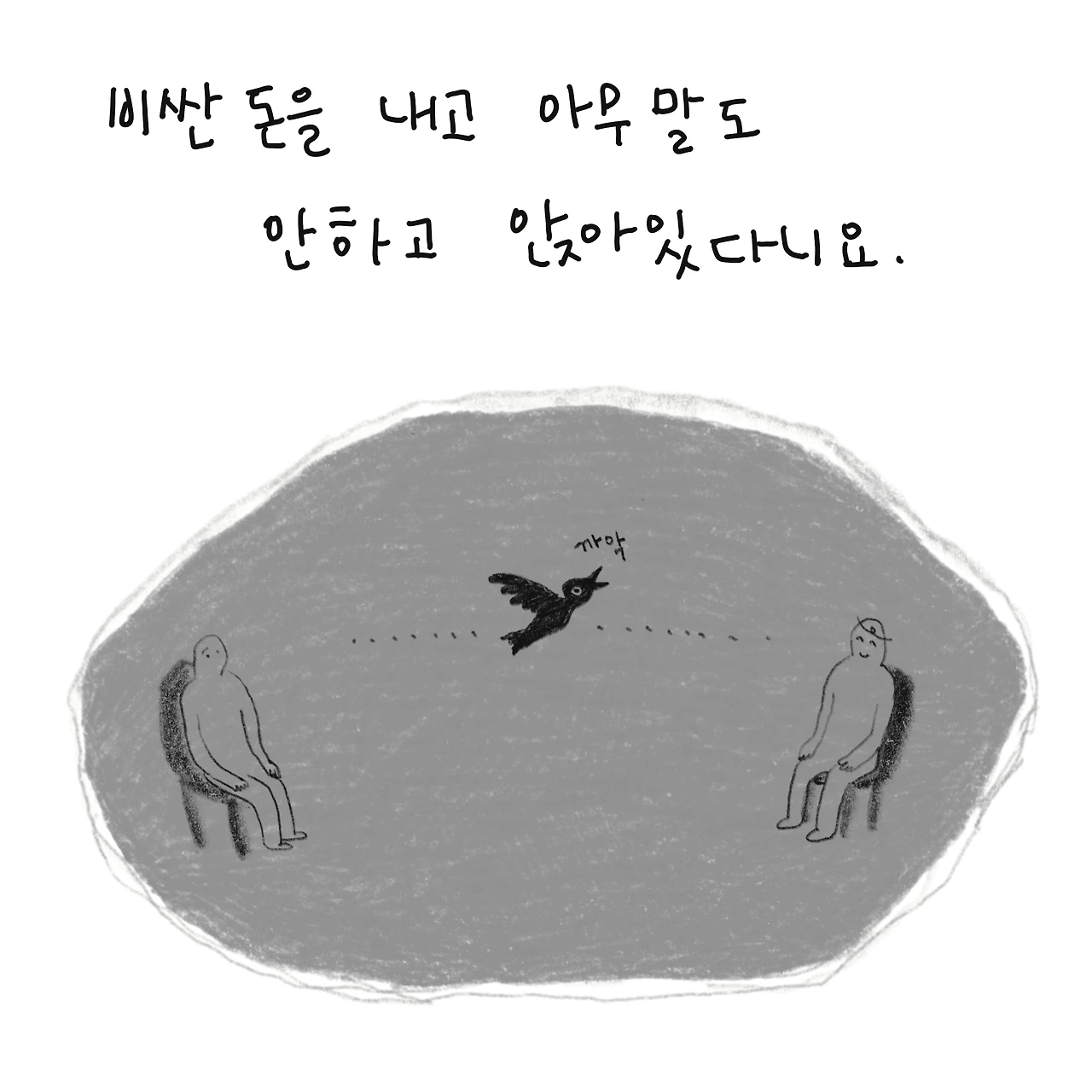 다만 그림 그리는 태도에서 한꼭지 달라진 게 있다면 예전에는 마냥 바쁜 마음으로 '빨리 빨리 그려서 다 전달해야 해!' 하는 마음이었다면 요새는 좀 더 여유로운 마음으로 그리게 되는 것 같긴 하다. 전달될 건 되고 안될 건 안되겠지 뭐.. 이러면서. 내 글을 읽어보는 분들도 이 약간의 여유(가 만약 전달된다면) 속에서 자유롭게 무언가를 몽상할 수 있으면 좋겠다.