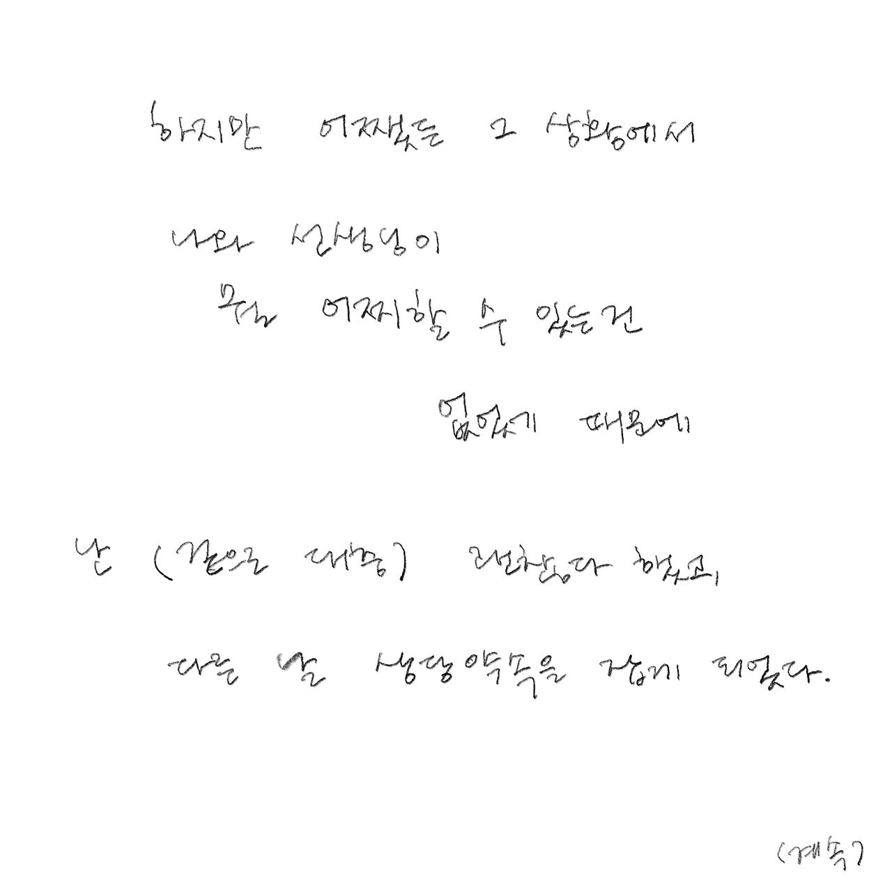 이거는 제가 옛날옛적에 듣던 노래인데요.. 글을 그냥 끝내기 아쉽기도 하고 제 글을 읽어주시는 분들에게 소개해보고 싶어서 가져와봤습니다. 약간 우울/시니컬해서 호불호 갈릴 것 같지만 가사가 요새 저의 마음을 때리네요..ㅠ