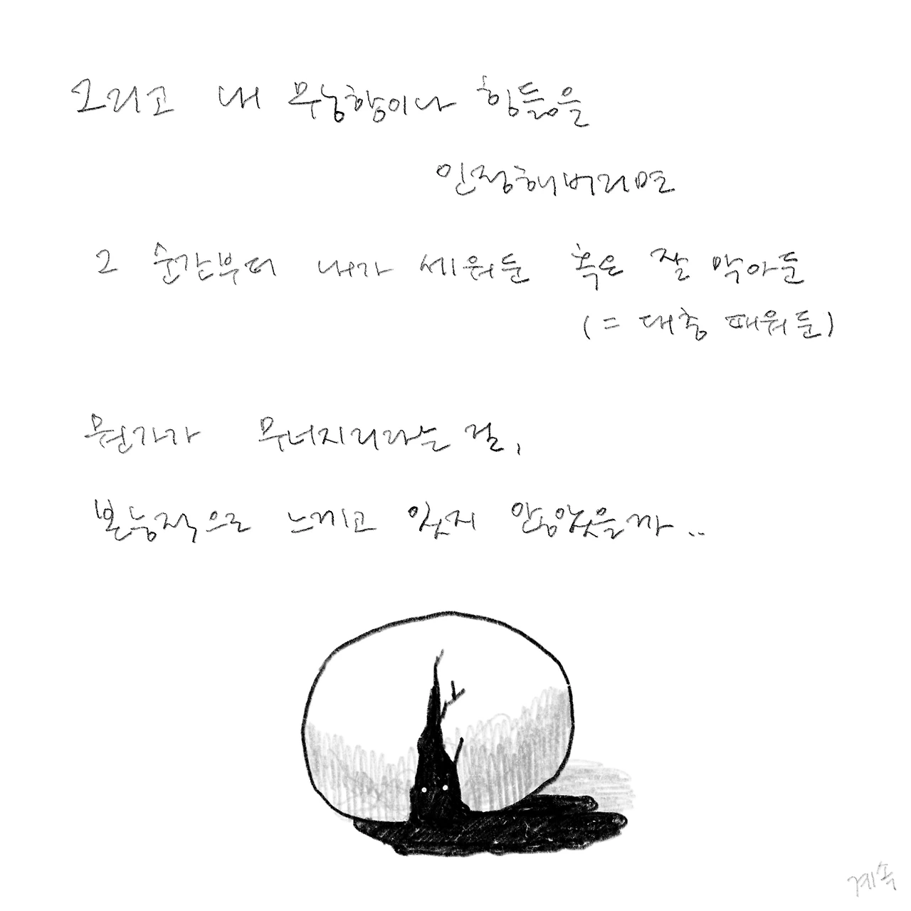 티끌 같은 내가 거대한 흐름을 통제하는 건 불가능에 가깝지만 나는 내 외부 우주, 내 마음 안의 우주, 그리고 타인의 우주까지 통제하려 했다. 그러나 당연히도 역시나 불가능했기 때문에.. 그 와중에 난 내가 통제할 수 있는(통제할 수 있다고 믿은) 유일한 것을 하려 했고, 그게 온갖 것으로부터의 철수와 회피였다. 그래서 내가 그랬구나 싶다.