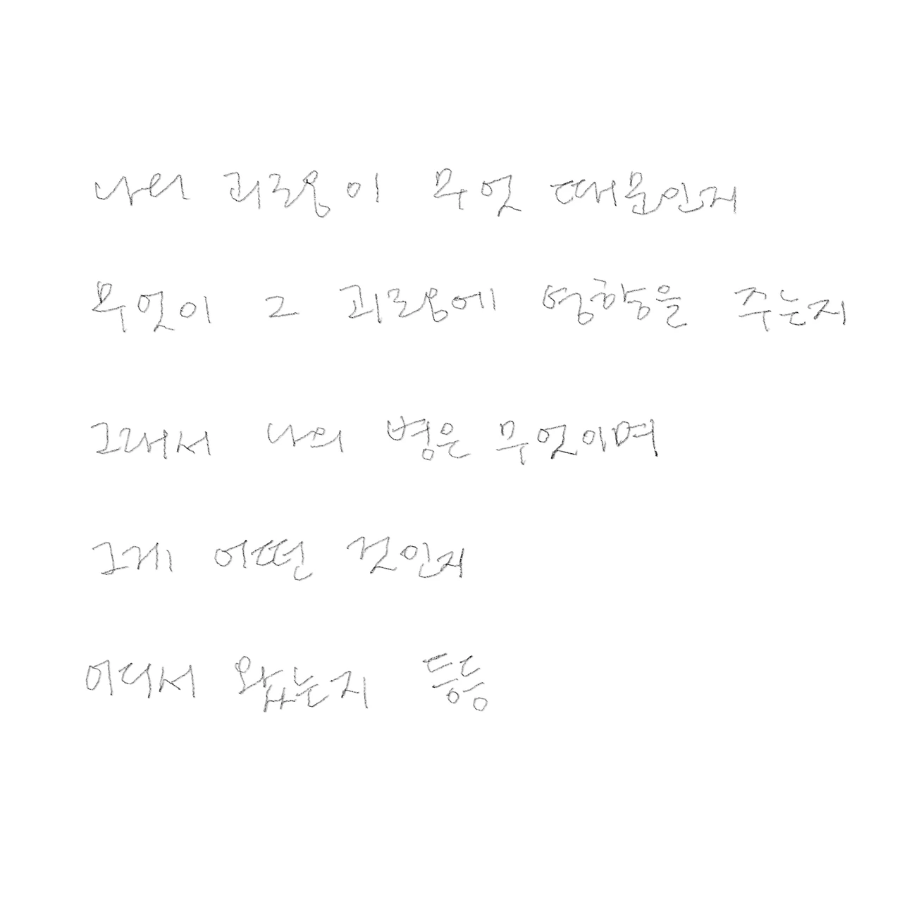 그리고 어떤 때는 내 문제나 어려움에 대해 선생님께서 이해하고 파악하신대로, 뭐 이러저러한 게 아닐까, 조심스레 얘기해주시기도 했다.