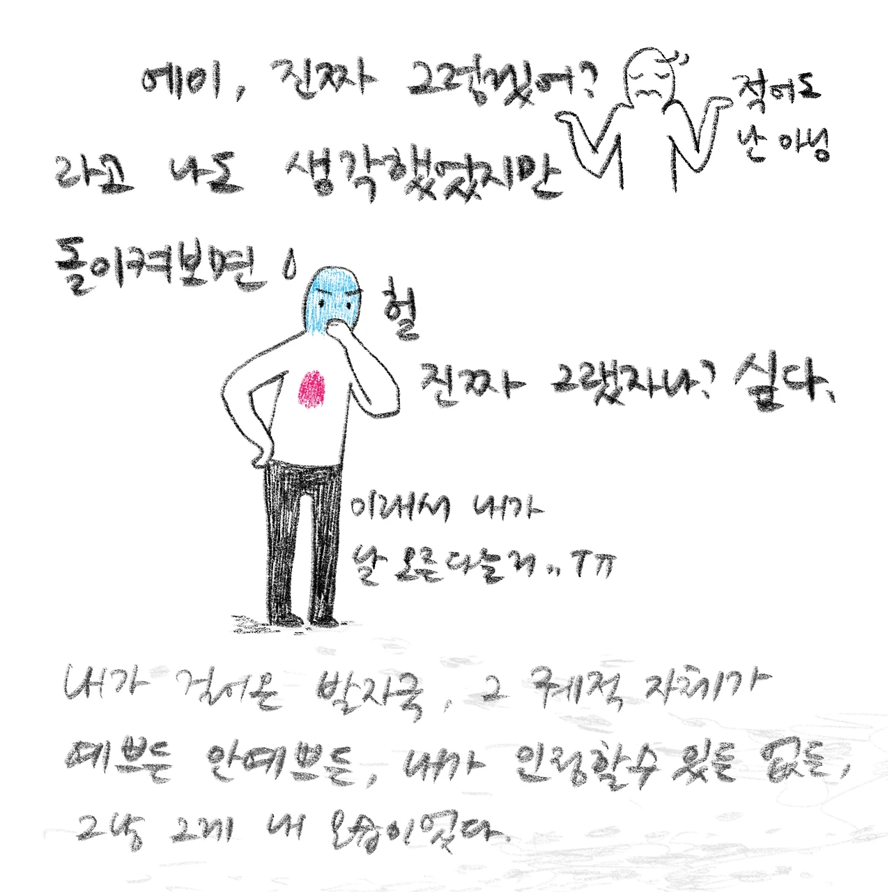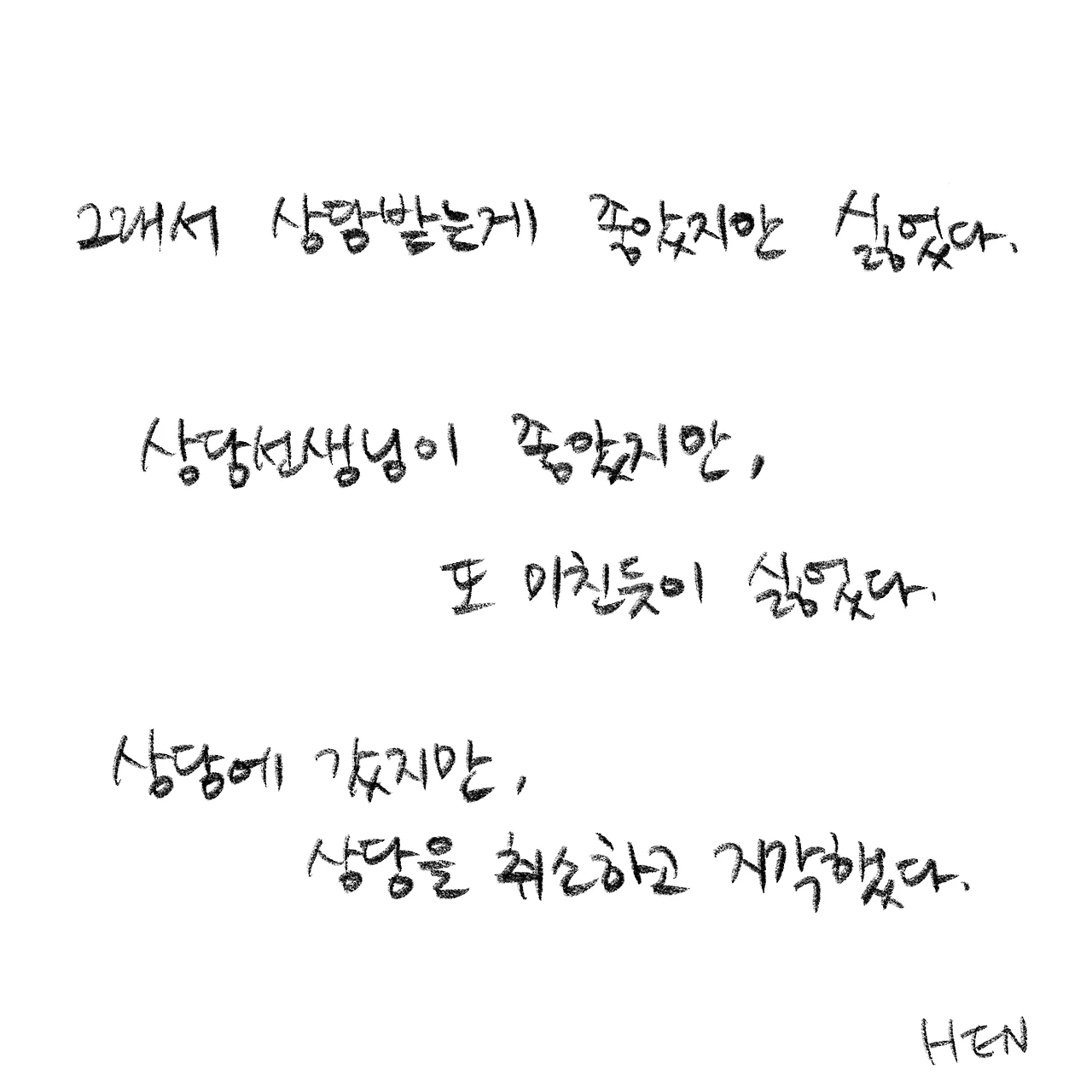 상담자이면서 내담자입니다. 상담받은 경험을 글쓰고 그립니다. 개인상담소 [마음과 공간 심리상담센터]를 운영하고 있습니다.