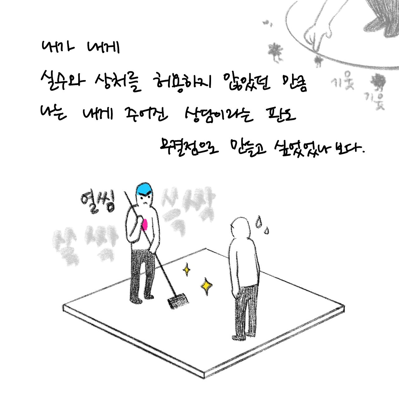 상담자이면서 내담자입니다. 상담받은 경험을 글쓰고 그립니다. 개인상담소 [마음과 공간 심리상담센터]를 운영하고 있습니다.