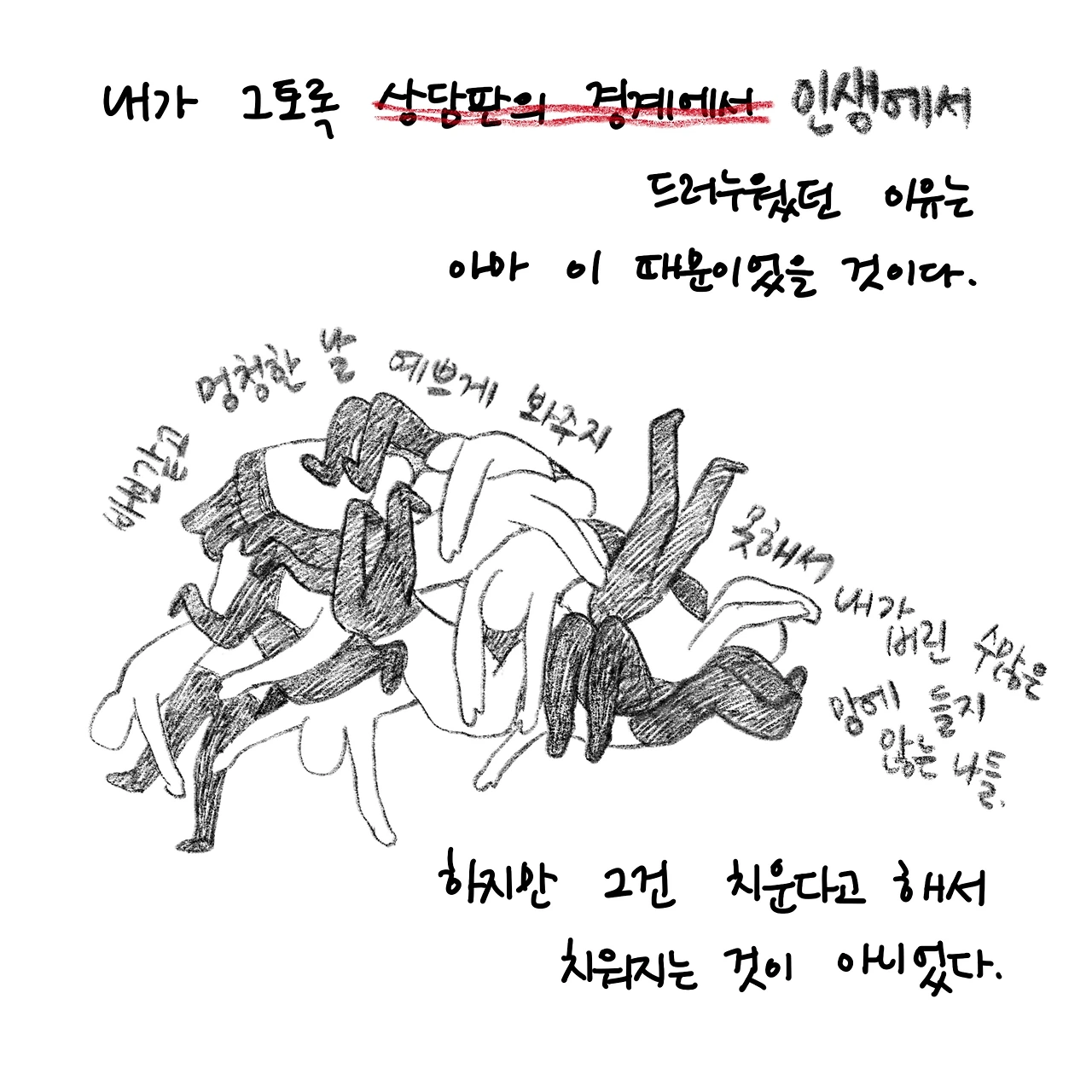 사는 게 너무 힘들어도, 두 발로 굳건하게 버티며 살아야 할 필요가 있는 거라고.