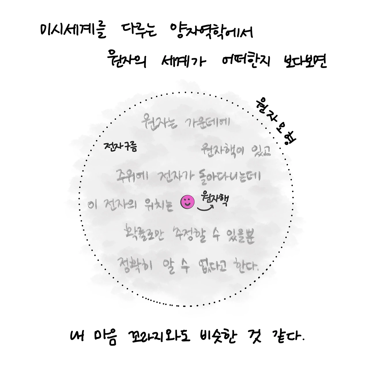 미시세계는 나의 마음, 너와의 관계, 우리의 세상과도 비슷하다(이번화에선 ‘마음’ 단어를 ‘관계’와 ‘세상’으로 바꾸어 읽어보아도 대충 뜻이 통하네요ㅎㅎ). 글에서 조금 오해의 소지가 있을 수 있는데 손쓸 수 없다고 해서 손놓고 가만히 있어선 안된다는 말을 덧붙이고 싶습니다:)
