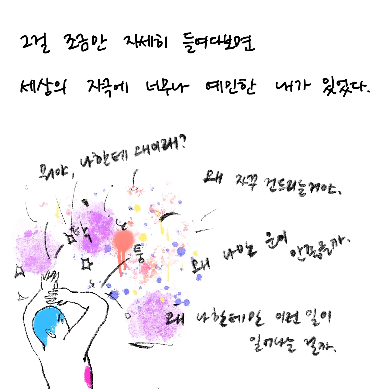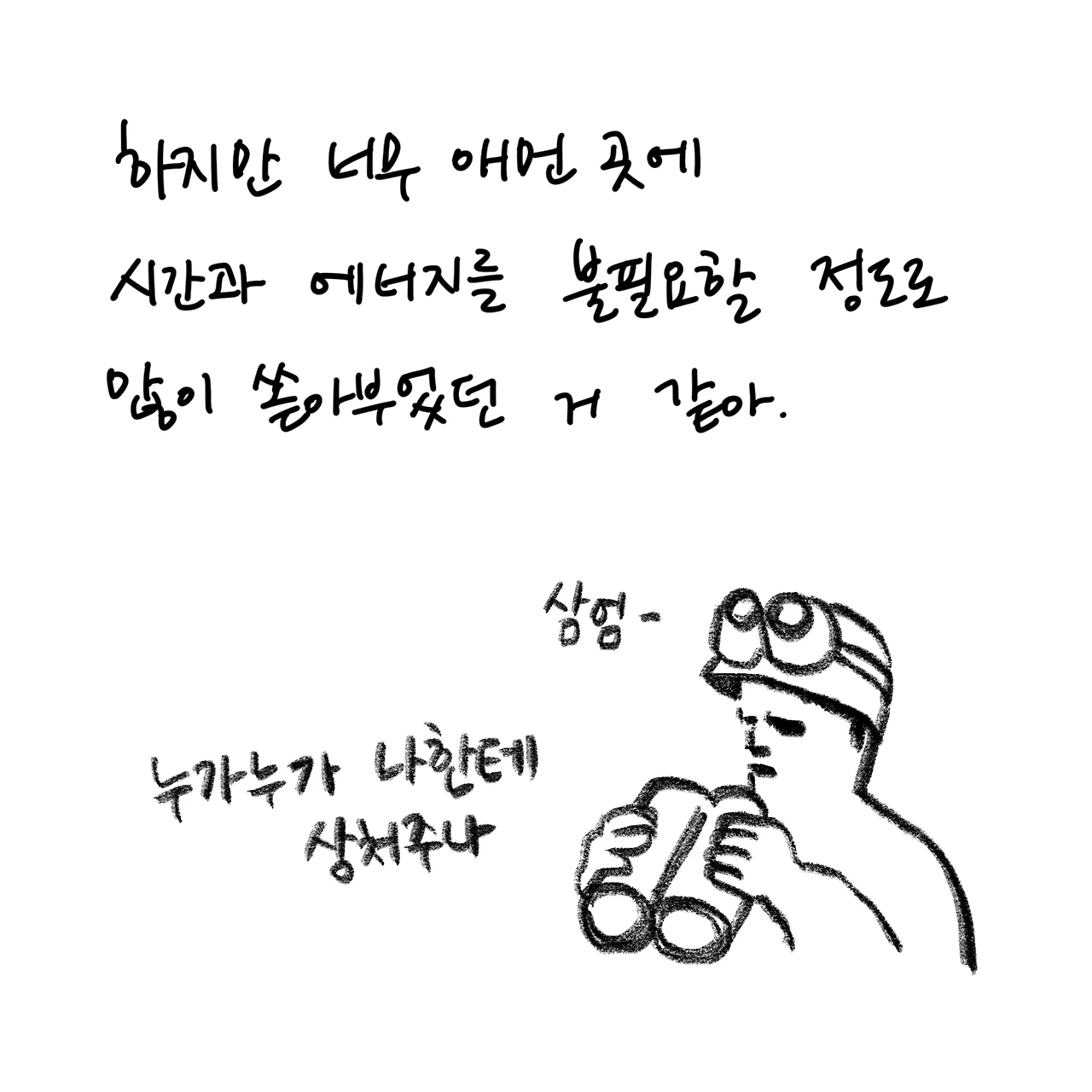 상담자이면서 내담자입니다. 상담받은 경험을 글쓰고 그립니다. 개인상담소 [마음과 공간 심리상담센터]를 운영하고 있습니다.
