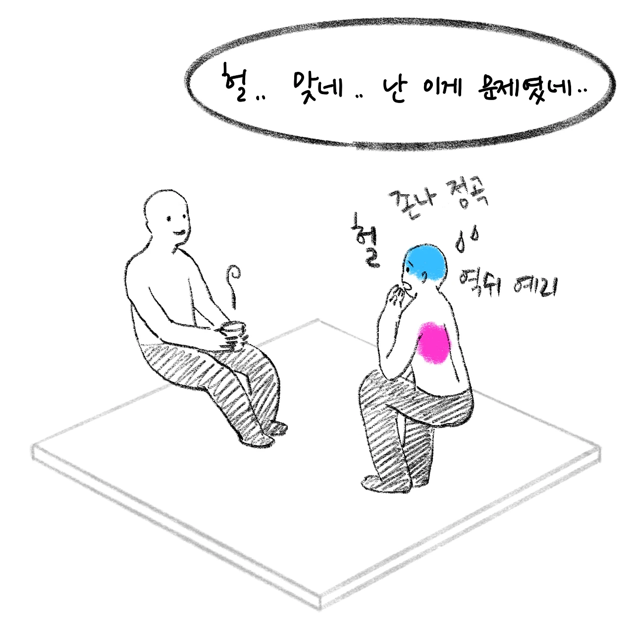 상담자이면서 내담자입니다. 상담받은 경험을 글쓰고 그립니다. 개인상담소 [마음과 공간 심리상담센터]를 운영하고 있습니다.