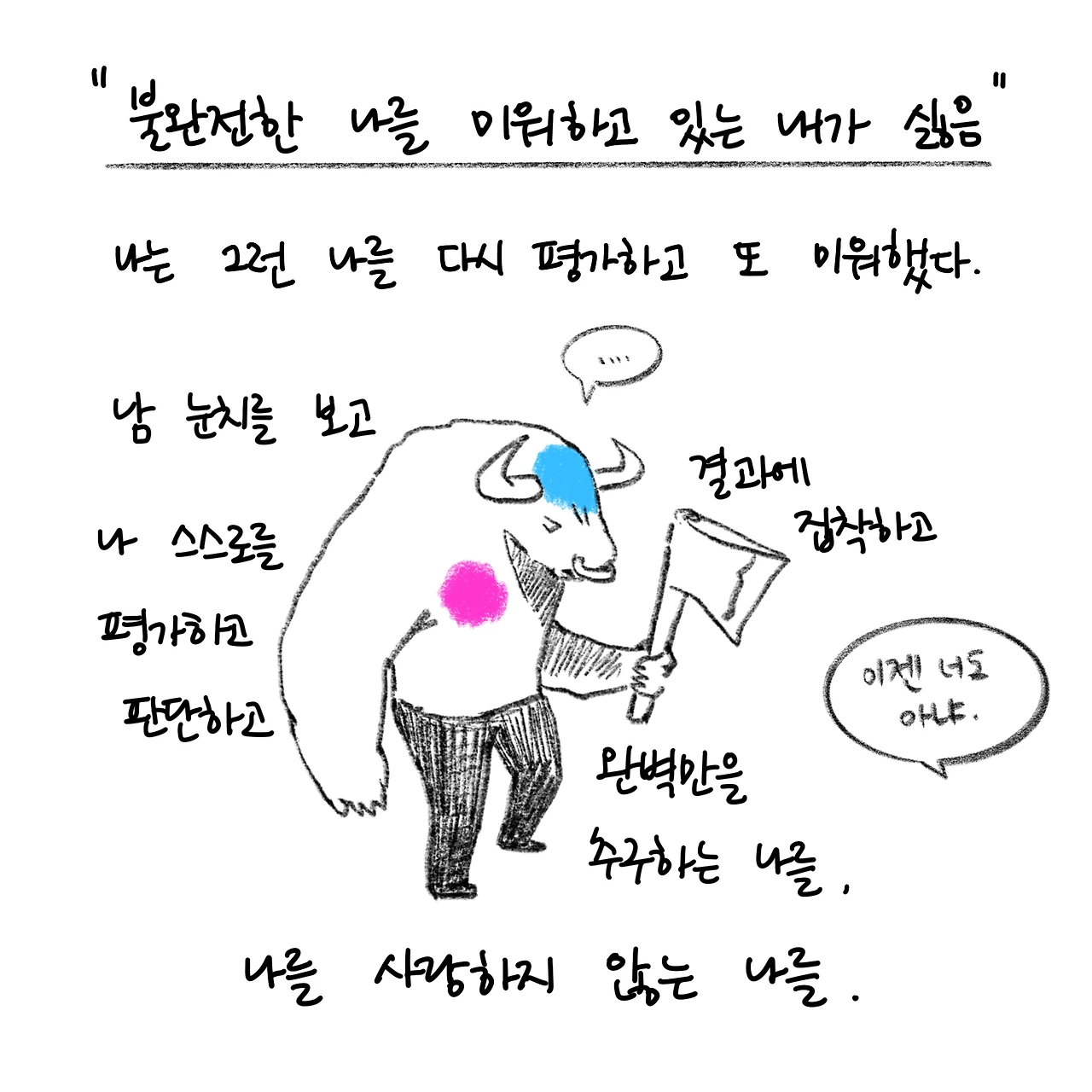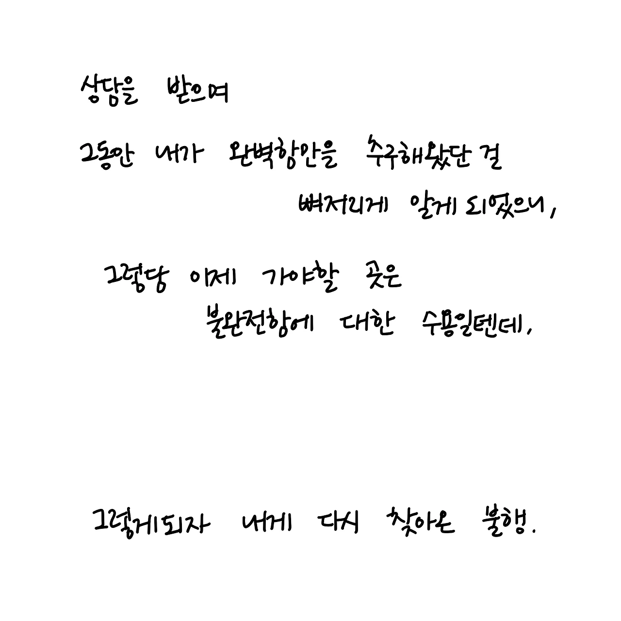 상담받은 얘기 16.1 나를 미워하는 나에 대하여/ 좀 말장난 같기는 한데 진짜 그랬다. 완벽주의자는 불완전함을 받아들이는 것도 완벽하게 하려고 한다