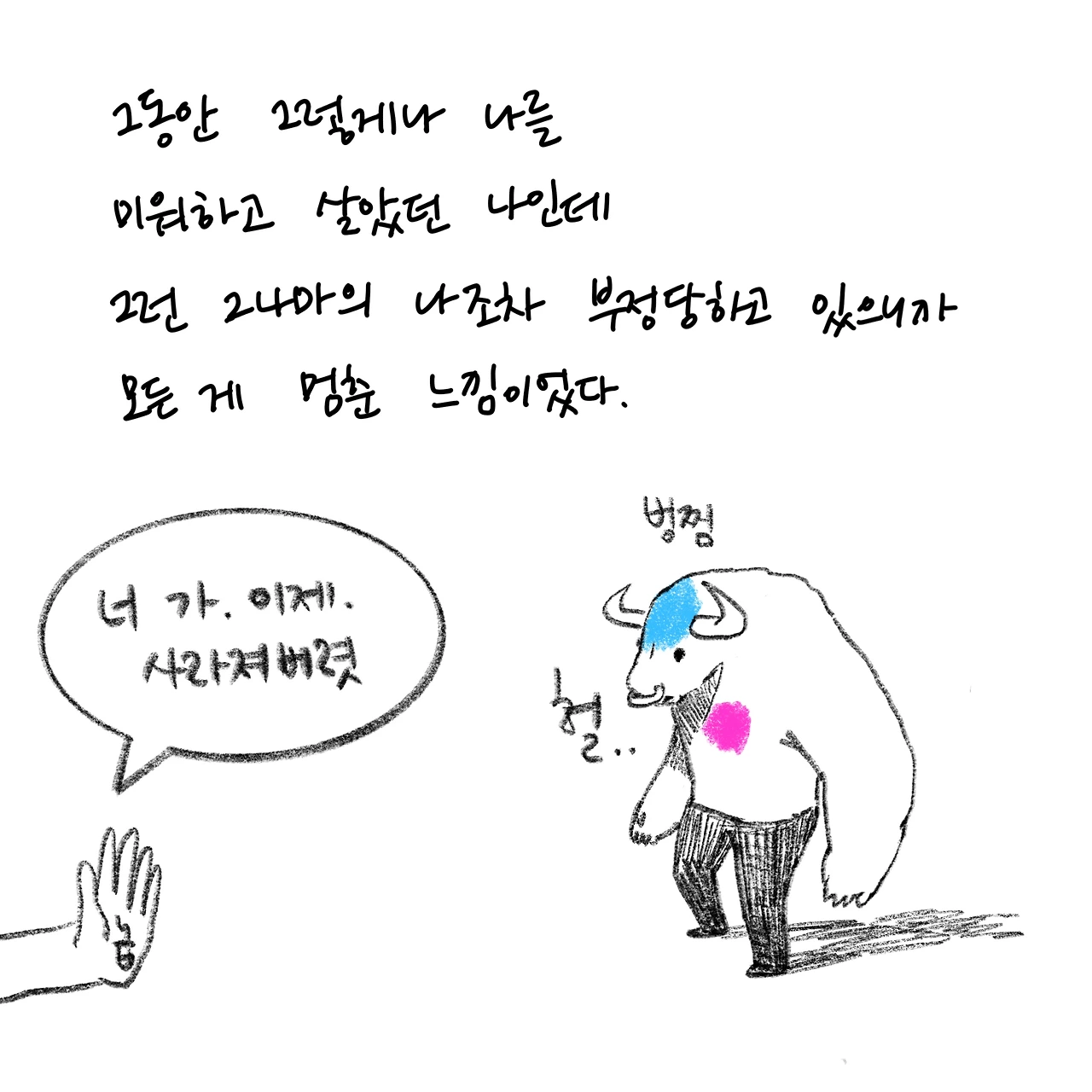 상담자이면서 내담자입니다. 상담받은 경험을 글쓰고 그립니다. 개인상담소 [마음과 공간 심리상담센터]를 운영하고 있습니다.