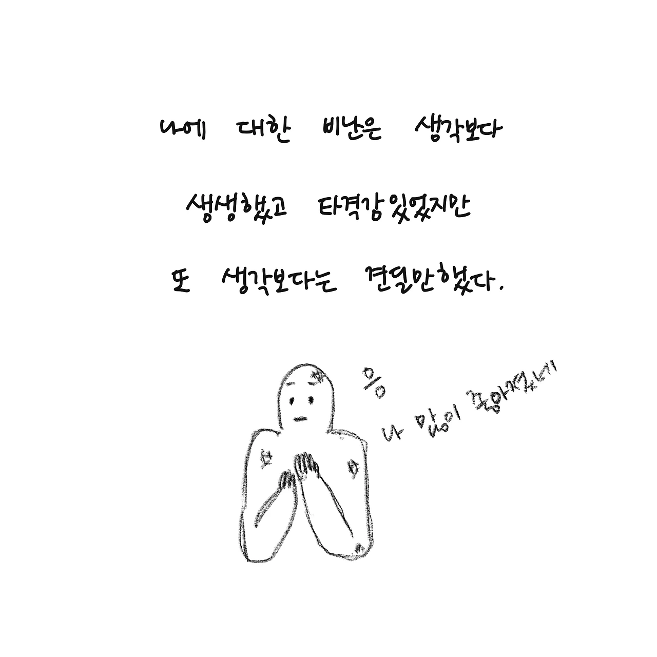 이번 집단상담으로 뼈맞는 소리를 들으며 느낀 불편감들이, 여러가지 생각들을 하게 하더라구요..