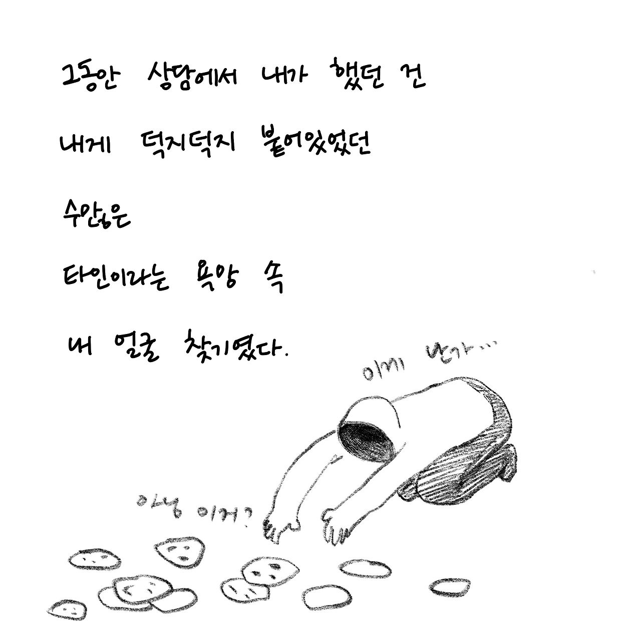상담자이면서 내담자입니다. 상담받은 경험을 글쓰고 그립니다. 개인상담소 [마음과 공간 심리상담센터]를 운영하고 있습니다.