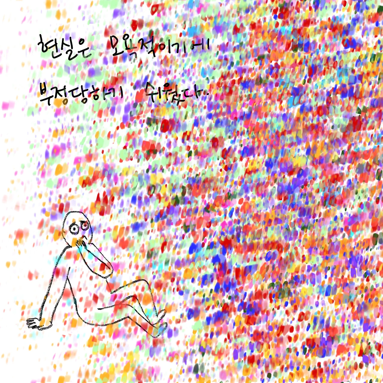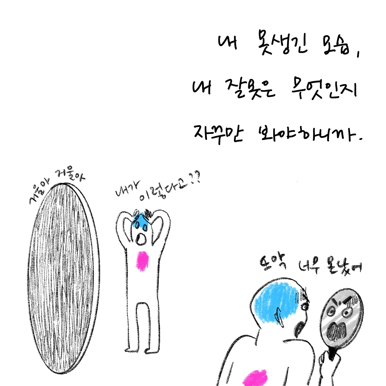 아마도 현실의 ‘잘못했다’는 반성과 교만, 회피 사이의 그 어디쯤일 것이지만