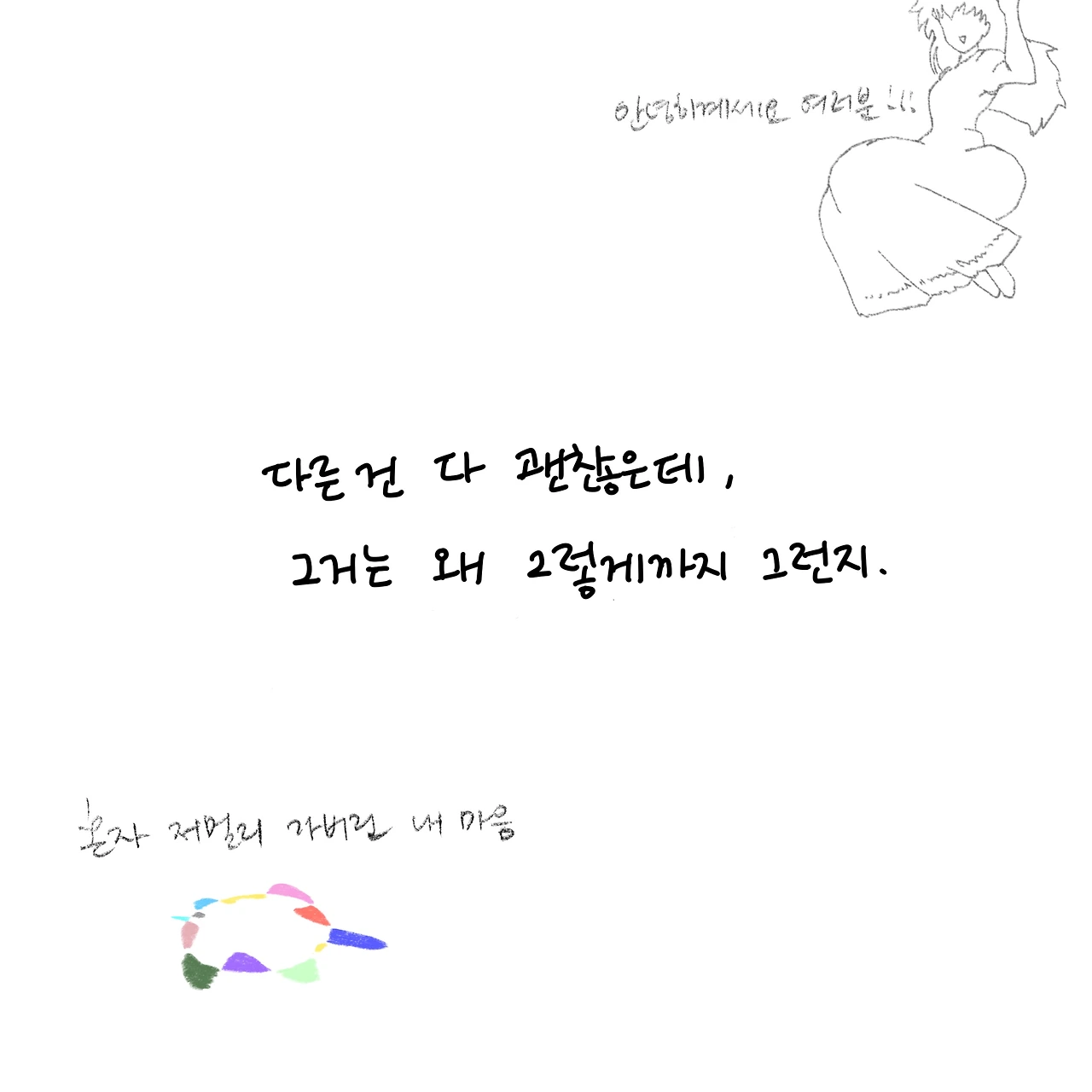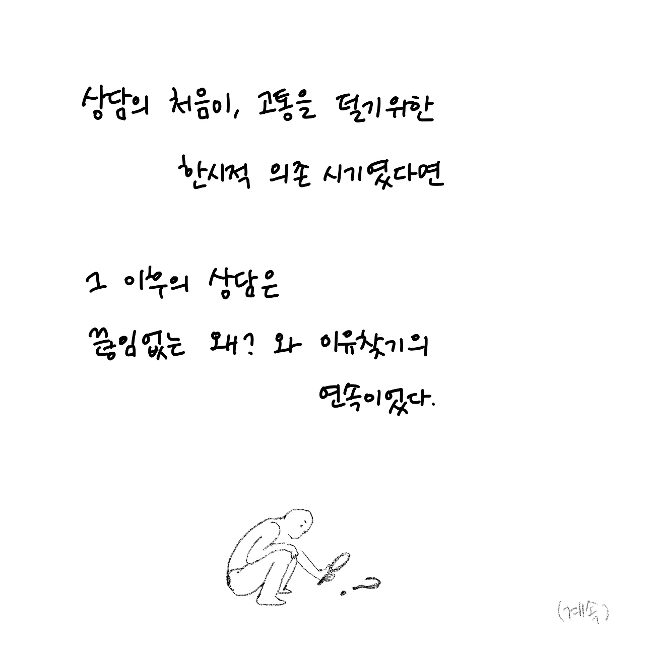 상담자이면서 내담자입니다. 상담받은 경험을 글쓰고 그립니다. 개인상담소 [마음과 공간 심리상담센터]를 운영하고 있습니다.
