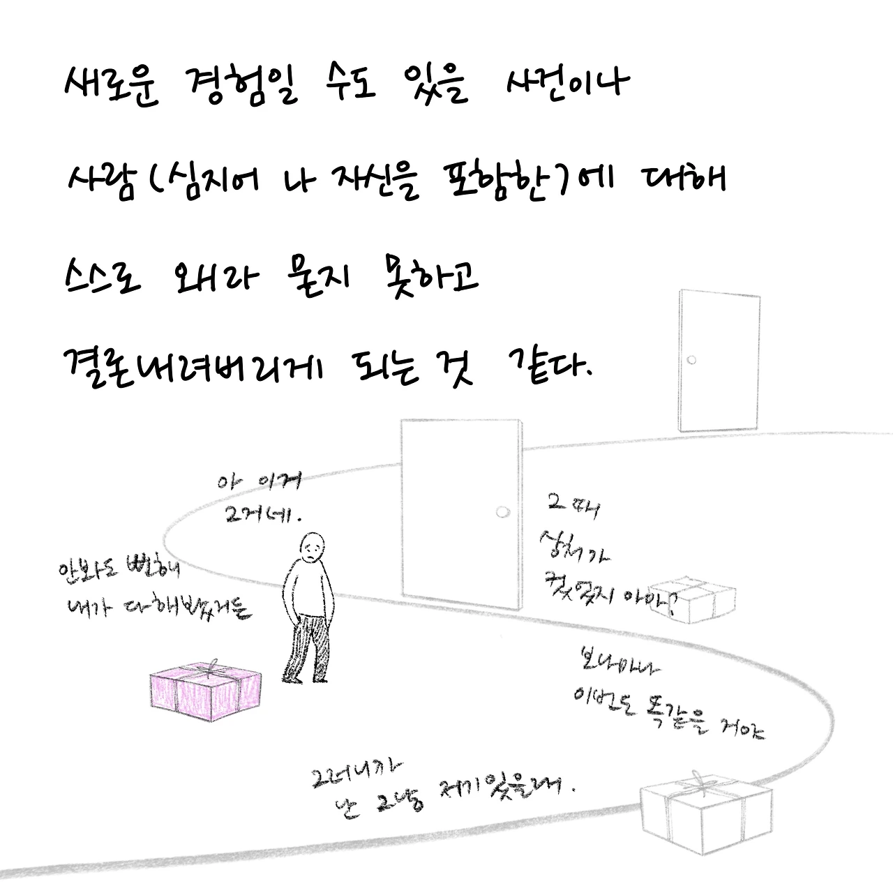 상담자이면서 내담자입니다. 상담받은 경험을 글쓰고 그립니다. 개인상담소 [마음과 공간 심리상담센터]를 운영하고 있습니다.