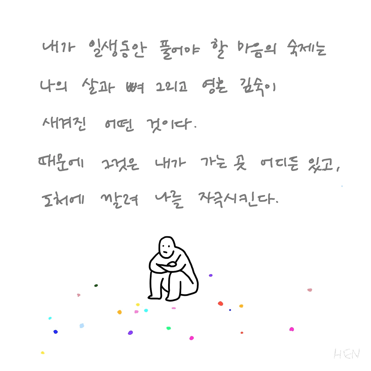 우리는 아물지 않은 상처와 고통 근처에 머무르려는 습성이 있다. 우리도 모르게.