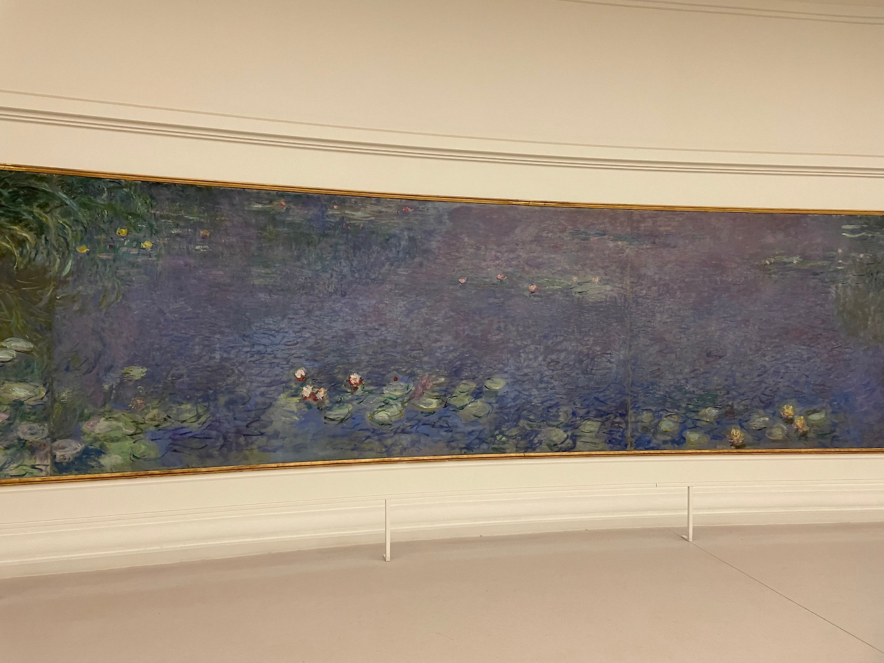 교환학생 생활을 하며 유럽 전역을 여행한 덕에 유명하다는 미술관은 많이 가봤는데도 오랑주리 미술관은 특별했다. 총 8개의 수련 연작은 새하얀 방의 곡선 벽을 따라 전시되어 있었다. 새하얀 전시실과 밝은 조명은 그 안에 발을 들이는 사람들을 압도하는데, 벽면을 꽉 채우는 작품의 거대한 크기에도 숨이 멎는다. 게다가 눈높이에 맞게끔 작품이 걸려 있기 때문에 더 마음껏 작품을 감상할 수 있었다.