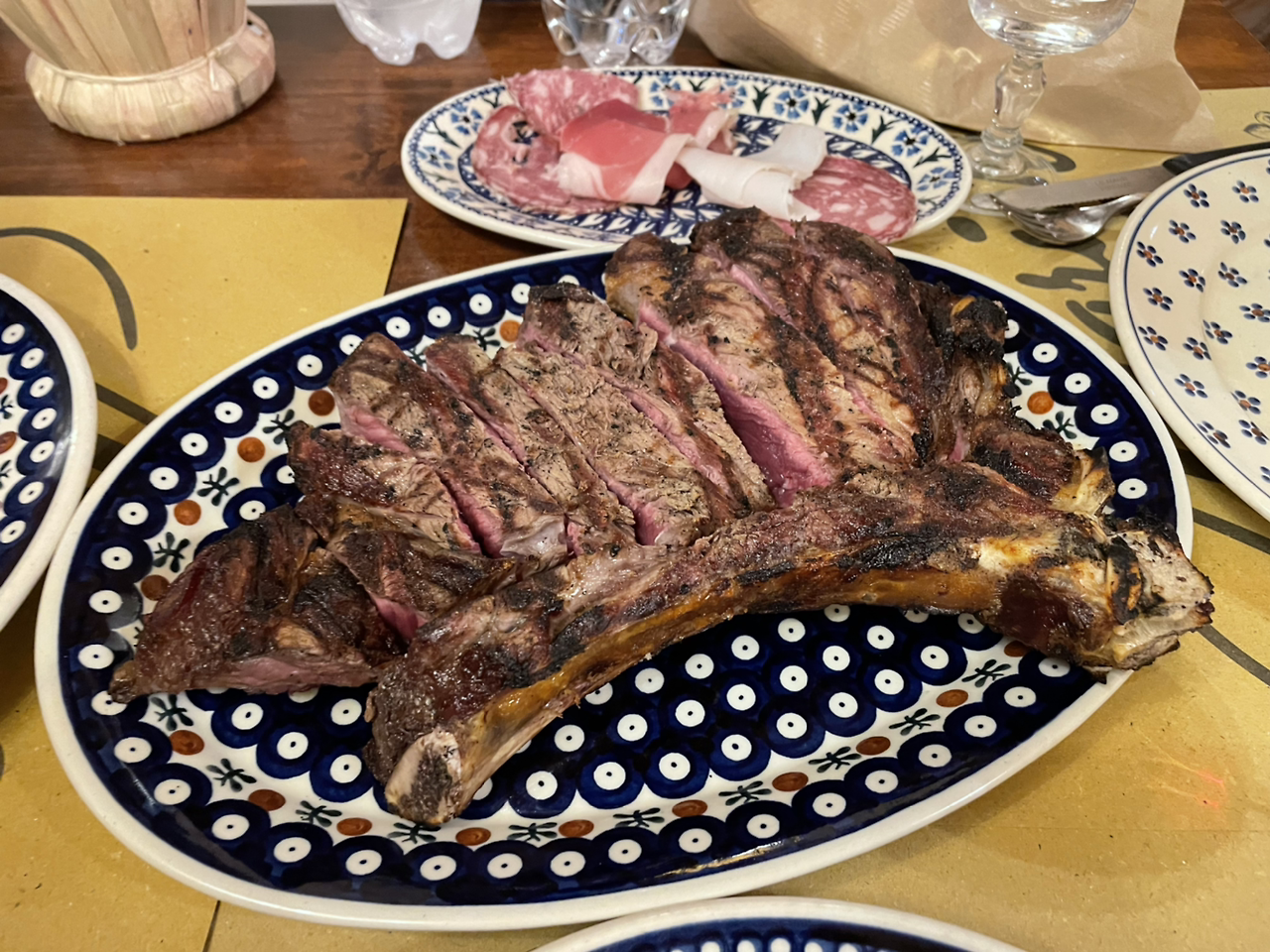 숙소에 들려 잠시 쉰 후에 다시 모여 티본스테이크를 먹으러 갔다. 이탈리아 친구가 자주 오던 곳이라더니 정말 가게 주인이 친구를 알아봤다. 둘이 이탈리아어로 뭐라고 대화를 나누더니 갑자기 살라미 두 그릇이 서비스로 나왔다. 그리고 하우스 와인 한 병도! 우리는 좁은 가게에 앉아 볼이 빨개지도록 와인을 마셨고 턱이 아플 정도로 스테이크를 씹으며 만찬을 즐겼다.
