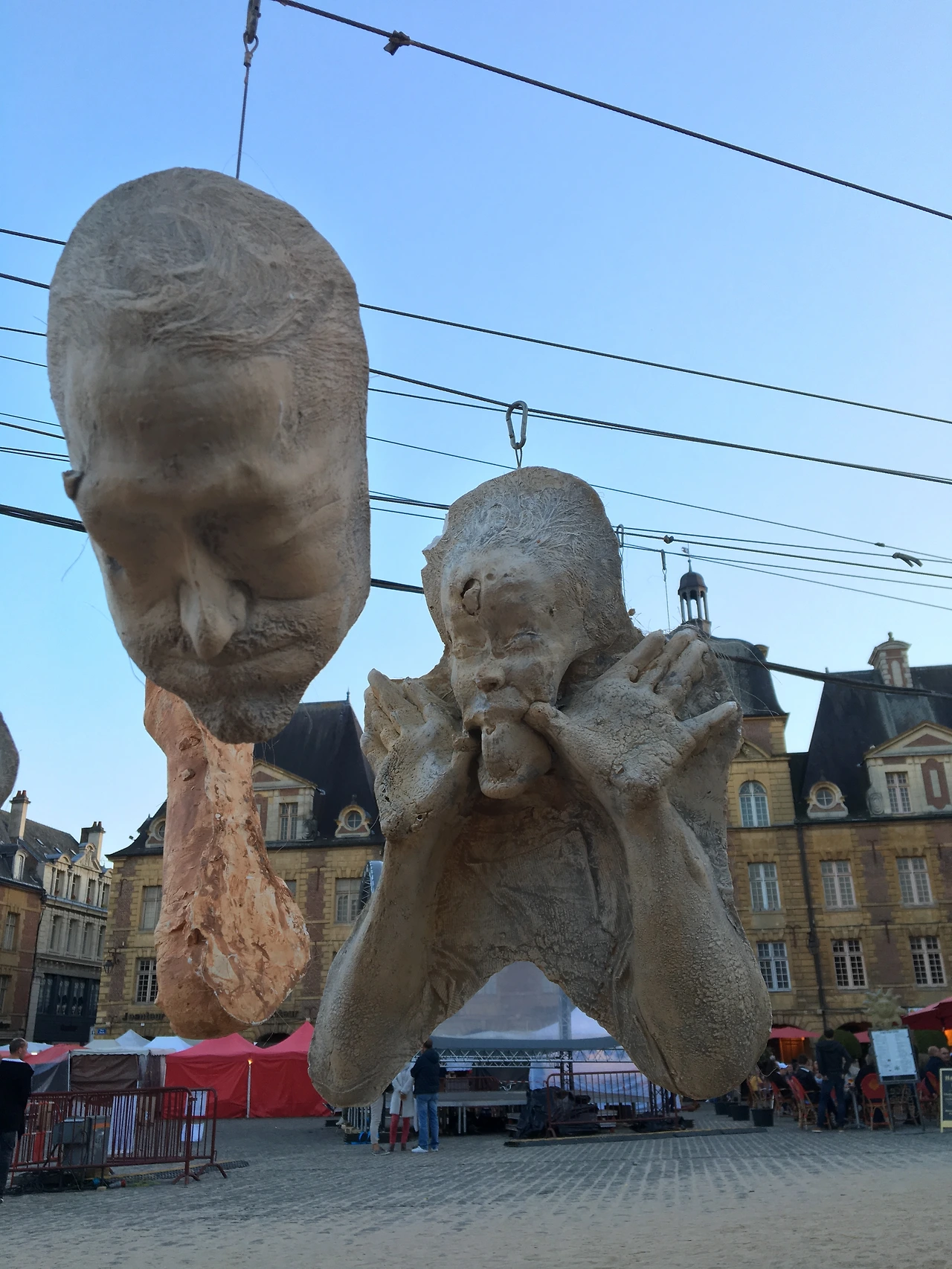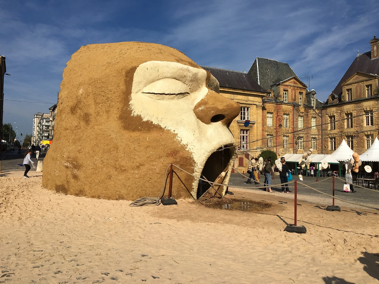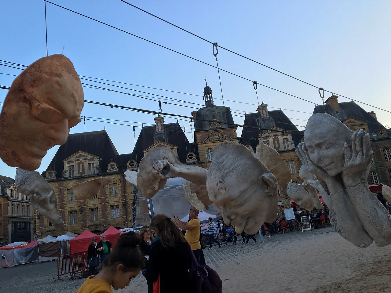 원하는 사람은 그 누구든 저 커다란 얼굴 안으로 들어갈 수 있다. 그 입구에서 아티스트들이 발을 씻겨 주는 의식을 치러준다고 했다. 이런 정화를 거쳐 얼굴 안에 들어가 설치된 작업실 안에서 자신의 얼굴이라던가 손을 찍어내게 되고, 다 마르면 그걸 어딘가에 파묻어놓고 다시 파내는 과정을 거쳐 줄에 건다는 것이었다.