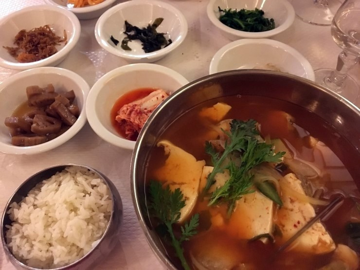 우린 자리를 잡고서는, 대구탕과 순두부찌개 그리고 음료로는 그라브 와인을 주문했다.