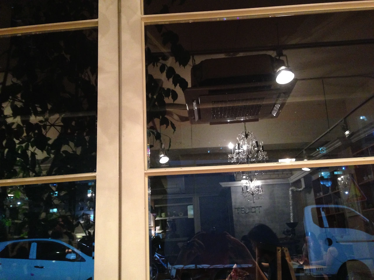 이제 완전히 땅거미가 내렸다. 이 글쓰기에 도취되어 일몰의 점진적 과정을 놓쳐버렸다. 자동차의 헤드라이트만이 환하다. 카페 안의 체감 온도가 더 올라가고 문득, 이곳의 샹들리에들이 처음으로 눈에 들어온다. 짙지 않은 초록의 카페 내벽이 부드럽게 빛난다.