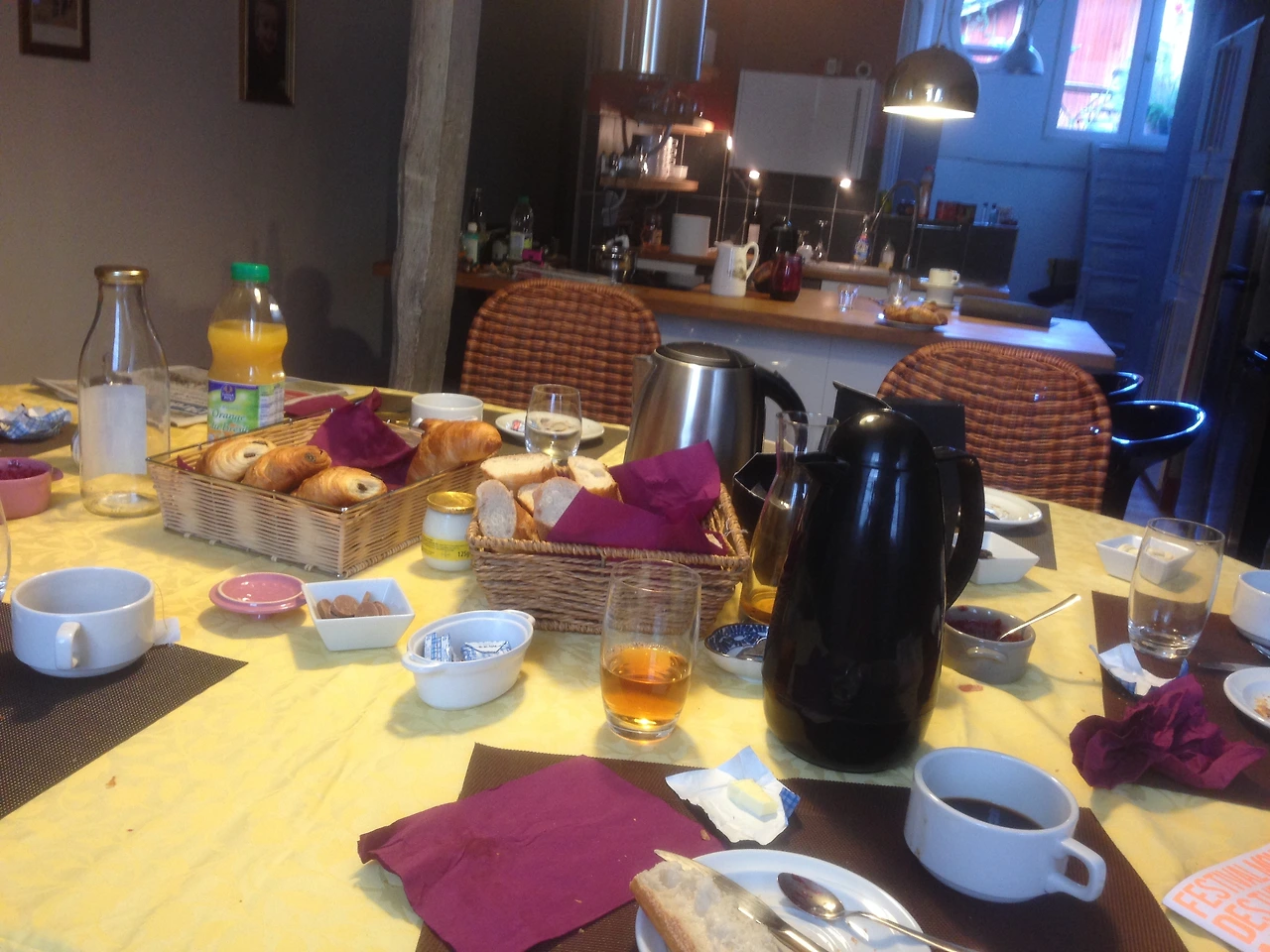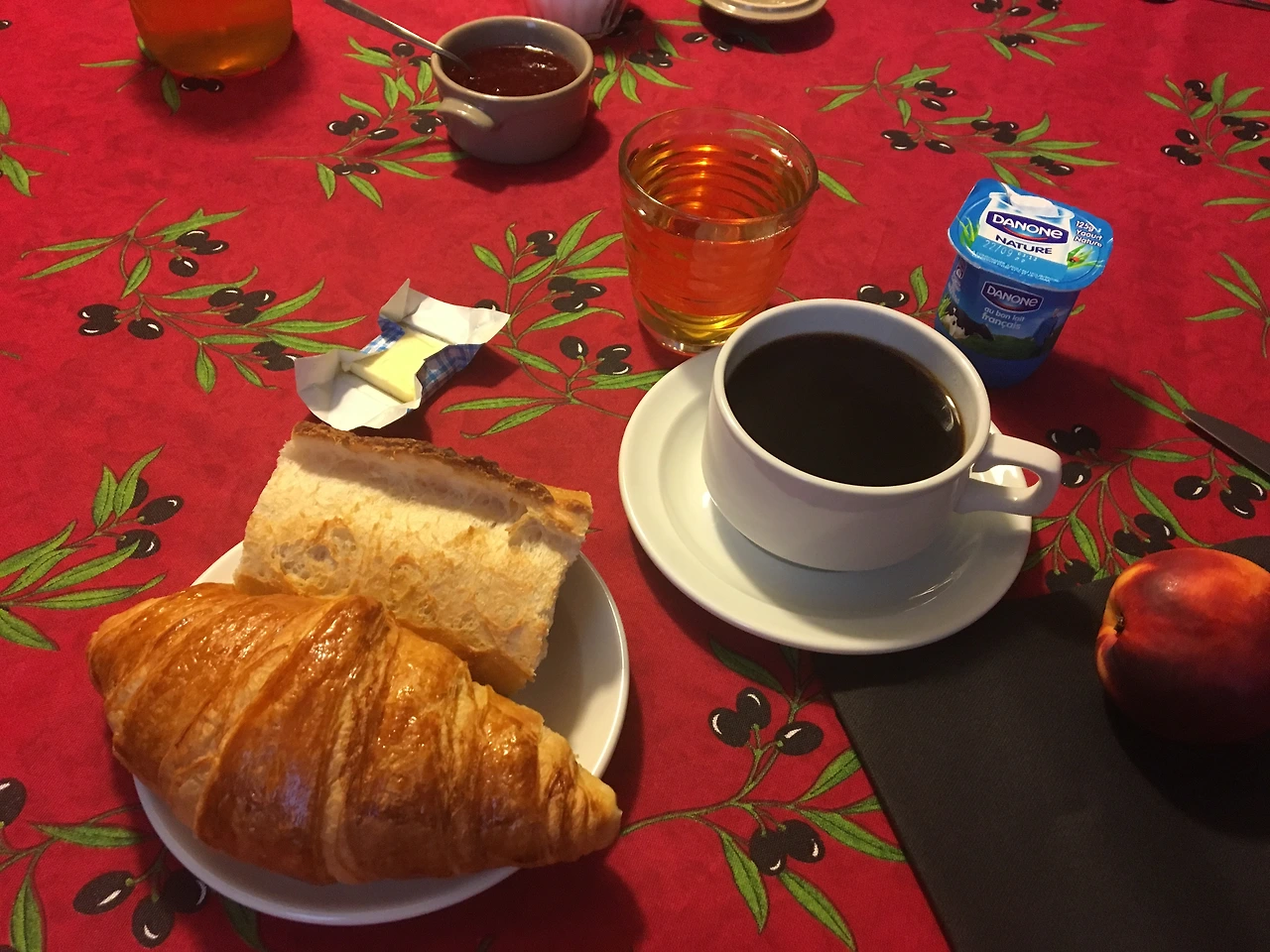 자, 크루아상과 바게트는 얼마든지요. 커피를 조금 더 따라드릴게요.