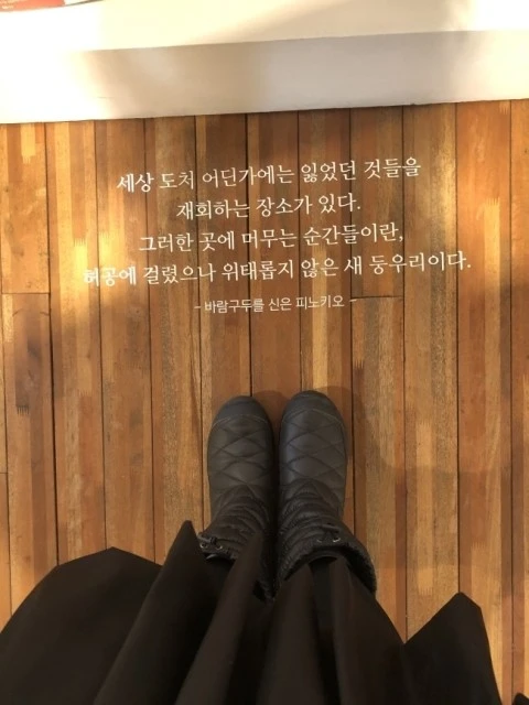 책의 페이지라던가 전시장 바닥에 글귀 시공한 사진 올리면