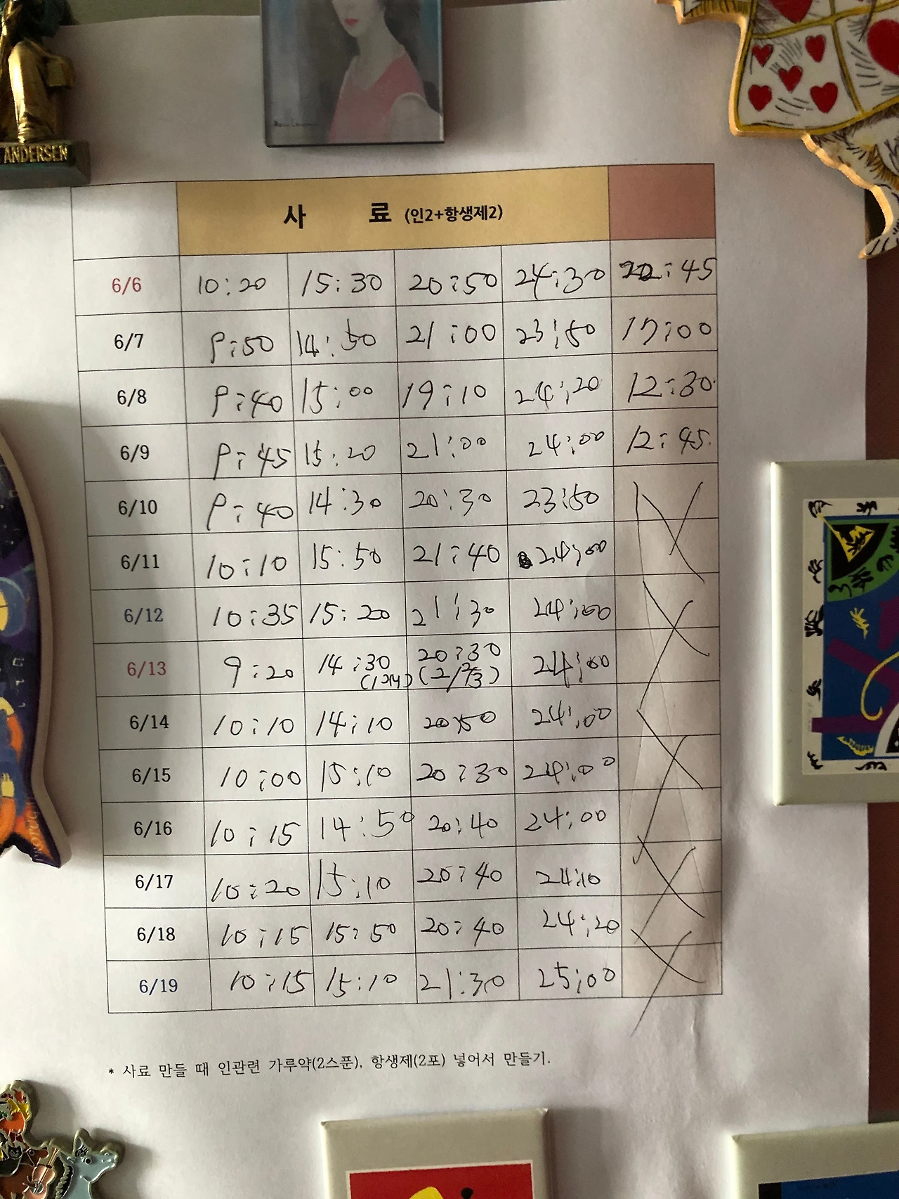 지난 2월 말 목에 구멍을 뚫은 이후, 2주마다 새로 붙이는 사료와 약 일지표는 대체 언제까지 이어질지 모르는 채로 계속 쌓여갔고, 올봄만큼은 계절이 보통 때보다 한 겹 더 밖에 있는 것처럼 느껴졌다.