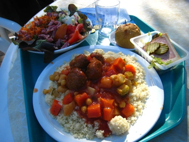 학교 식당에는, 나탈리가 추천한 레스토랑 ‘캅 쉬드’에 즐겨 갔다. 학생 식당은 우리 학생들에게는 싼값에 양질의 식사를 할 수 있는 곳이다. 그날의 요리에 야채, 과일까지 먹으면 2.9유로, 디저트 하나쯤 더 먹어봤자 고작 3.3유로에 불과했다. 고기는 소, 돼지, 양, 칠면조, 닭, 각종 생선 등이 돌아가며 조리되어 나왔다. 버터에 볶은 감자, 당근, 껍질콩 등이 곁들여졌다. 이 식사로 말할 것 같으면, 내 인생에서 이 기간에만 누릴 수 있는 프랑스 학식 체험이었으므로 틈틈이 식사 쟁반을 사진으로 남겨두곤 했다.