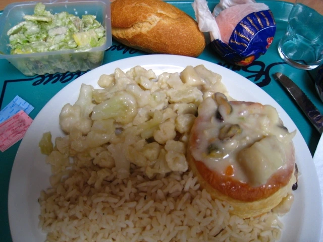 학교 식당에는, 나탈리가 추천한 레스토랑 ‘캅 쉬드’에 즐겨 갔다. 학생 식당은 우리 학생들에게는 싼값에 양질의 식사를 할 수 있는 곳이다. 그날의 요리에 야채, 과일까지 먹으면 2.9유로, 디저트 하나쯤 더 먹어봤자 고작 3.3유로에 불과했다. 고기는 소, 돼지, 양, 칠면조, 닭, 각종 생선 등이 돌아가며 조리되어 나왔다. 버터에 볶은 감자, 당근, 껍질콩 등이 곁들여졌다. 이 식사로 말할 것 같으면, 내 인생에서 이 기간에만 누릴 수 있는 프랑스 학식 체험이었으므로 틈틈이 식사 쟁반을 사진으로 남겨두곤 했다.