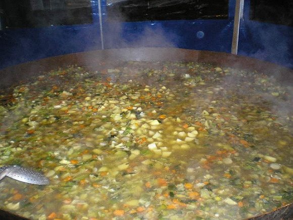 그중에서도 특히 1000개의 달걀로 만드는 오믈렛이라니! 법원 앞 공터에서는 두 차례, ‘프라이팬의 친구들’(Lous Amics de la padère)이라는 동호회가 주최하는 초대형 음식 만들기 이벤트가 열렸다. ‘1000개의 달걀로 만든 오믈렛’이라던가 ‘초대형 가르뷔르’등이 그것이다. 우리나라로 따지면 1000인분의 비빔밥이나 떡국 만들기 같은 것이다. 이런 놓칠 수 없는 구경거리를 나섰다가 옆의 시식자와 친구가 되는 일도 있었다.