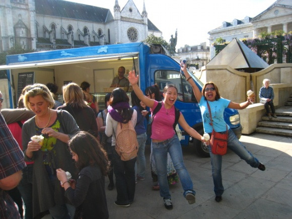 이 전설적인 아이스크림 트럭 뒤편의 법원은 학생들에겐 견학 장소이기도 했다. 우리들은 마리 크리스틴과 더불어 재판 홀에서 소위 참관이란 걸 했다. 그것은 고국에서도 해보지 못한 귀한 체험이었지만 정작 판사 앞에 선 피고들의 목소리는 잘 들리지도 않았다. 친절하게 뒤를 돌아 우리를 향해 자기 죄를 고백하는 것이 아니었기 때문이다. 관찰하기엔 미흡했던 이 견학을 마치고 뒤돌아 나오자마자 거부할 수 없는 아이스크림 트럭이 기다리고 있었다. 이 파란 트럭에서 우리는 법정이 유발한 모든 지루함을 씻어버릴 수 있었다.