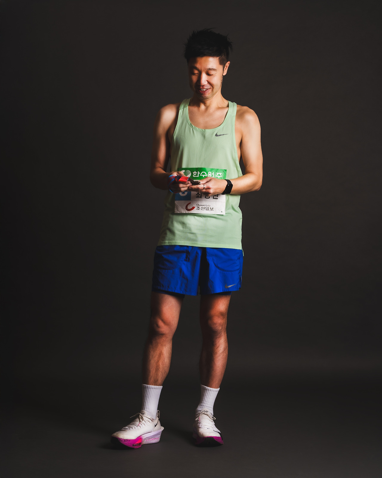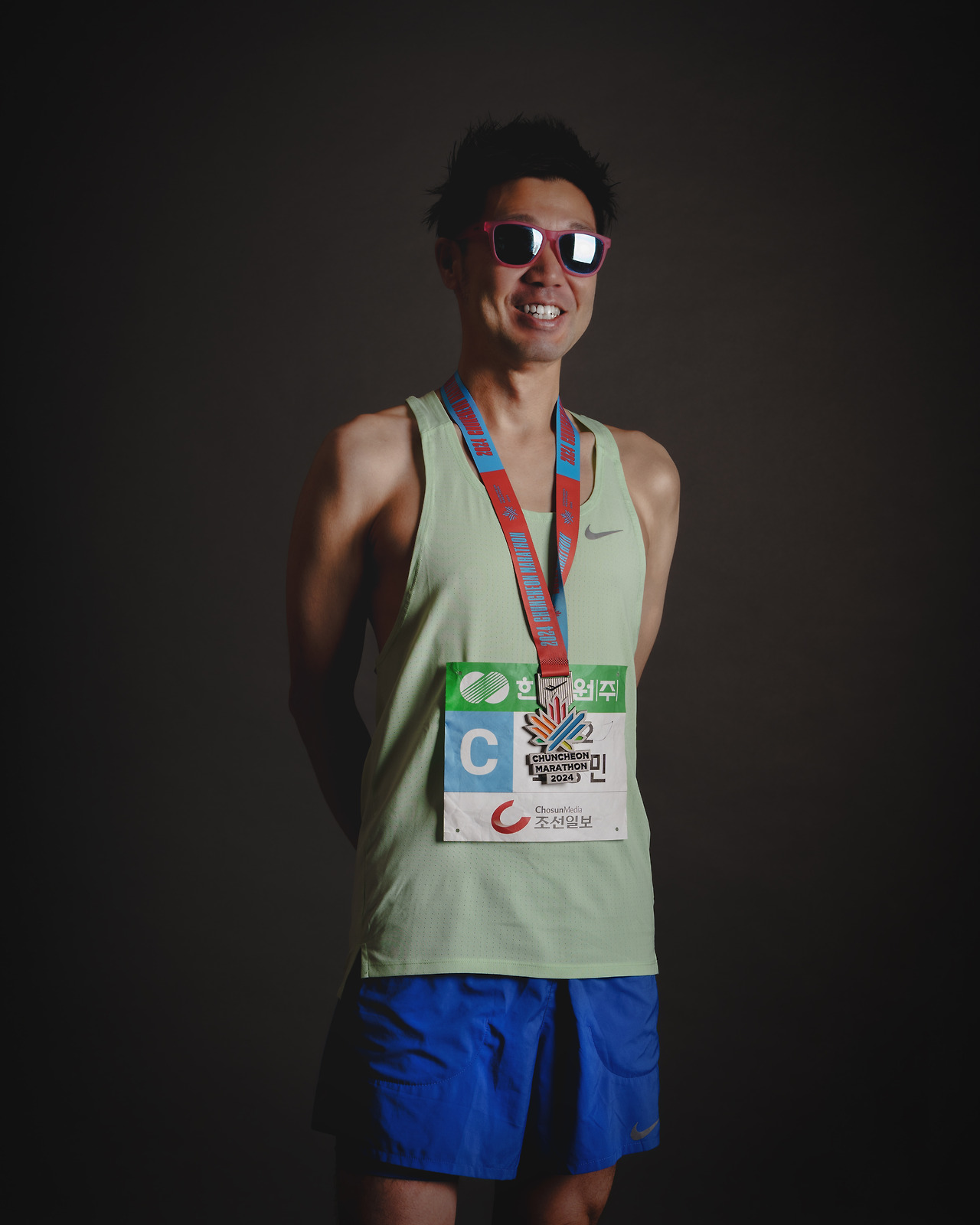 약속된 시간에 스튜디오에 도착해서 준비한 러닝복과 러닝화를 신고 촬영을 시작했다. 아무 생각 없이 갔는데, 사진의 컨셉도 정해야 했고, 이것저것 포즈, 시선 처리 및 표정 연기까지 신경 쓸 것이 많았다. 까맣게 잊고 있던 웨딩사진 촬영이 생각났다. 아 맞다. 그때도 꽤 힘들었었지. 처음 사진을 찍기 시작했을 때는 서로 어색해서, 포즈도 굳은 느낌이었고 얼굴 표정도 좀 인위적인 느낌이었는데, 1시간 남짓 촬영하는 동안 자연스레 러닝에 관한 대화를 하다 보니, 나의 마음도 점점 편안해졌고, 사진에 표정도 좀 더 자연스럽게 나오기 시작했다. 작가님은 올해 시카고 마라톤 대회를 다녀왔고, 일본에서 열린 대회도 다녀온 적이 있다고 했다. 그러면서 나에게도 해외 대회를 한 번 꼭 가보라고 강력하게 추천해 주셨다. 아, 듣고 보니 진짜 가고 싶어졌다. 시카고였는지 일본이었는지는, 주로에 응원하는 사람이 처음부터 끝까지 끊임없이 있었다고....