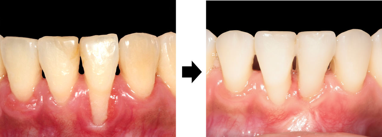 교정을 끝낸 치아 주변 잇몸이 더 내려가는 경우가 종종 있다.