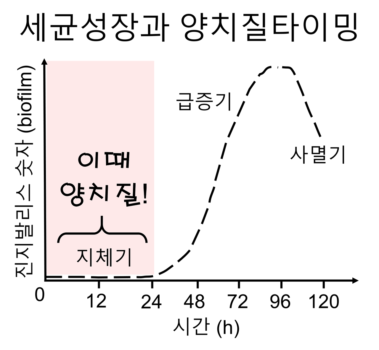 초기 24시간 ‘지체기(lag phase)’ 안에 양치하면