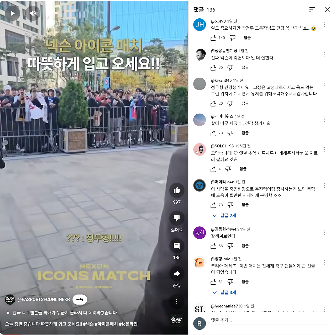 사실 이 경기 전까지 유저들에게 넥슨의 이미지는 최악에 가까웠다. 게임 내 그래픽이나 성능 개선에 집중하기보다는, 좋은 선수를 얻기 위한 유저들의 심리를 이용해 끊임없이 과금을 유도해왔기 때문이다. 그래서 유저들은 FC온라인 사업 총괄인 넥슨의 박정무 운영실장의 실명을 거론하며 강하게 비판했다.