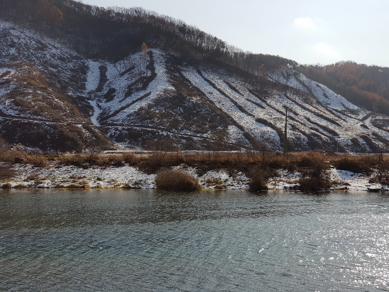 '빨리 달리면 가슴에 남는게 없더라'. 조금 늦더라도 정속운전을 하면 눈에 보이는 풍경들이 조용히 말걸어오고 그 말에 난 대답을 하고...한가하고 여유로운 고속도로 풍경은 여전히 아름다웠다. 겨울이라고 말하듯 전라도을 벗어날 무렵 산정상에 뭔가 보였는데 알고 보니 엊그제 내린 눈이 쌓여있는 모습이였다.
