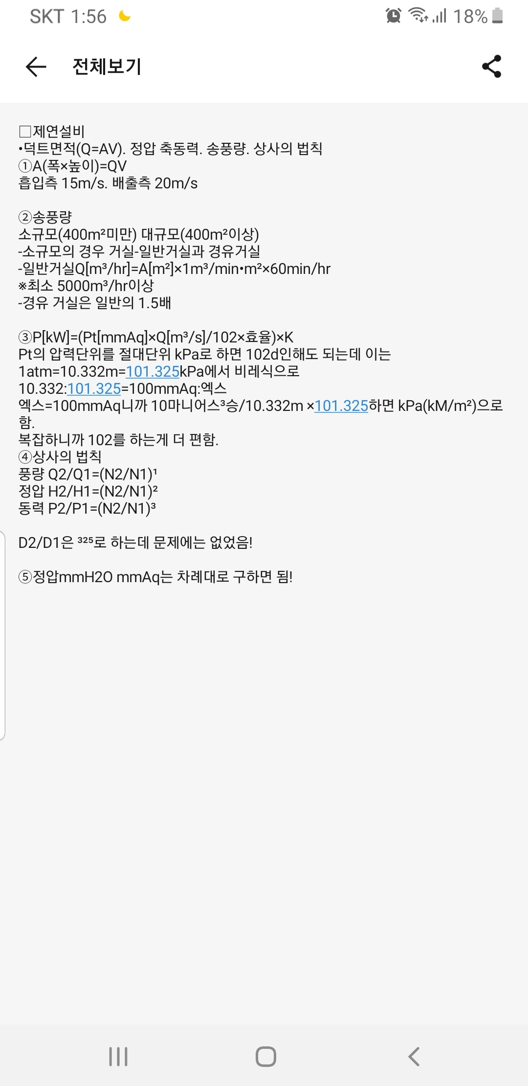 이제는 mmAq와 kPa의 관계를 안다.