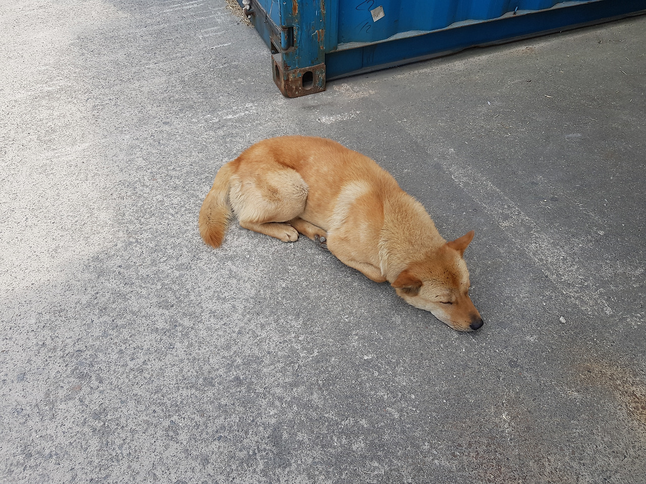 사무실에는 無時라는 친구가 있다. 어느 정도 시간이 지난 뒤 알고 보니 우리 창고 앞에 있는 창고에 소속된 개인데... 어느 날 나에게 왔다. 목줄도 없어... 자유로이 다니는 모습에 반해 이것저것 챙겨주다 보니 이름을 지어주게 되었고 -(처음엔 나 말고 다른 직장동료들을 보면 멀찍이 달아나는 모습에 개가 사람을 무시한다는 말을 하는 누군가의 말을 듣고 오고 감에 구속이 없다는 뜻으로)- 無時라 칭하며 부르다 보니 이젠 제법 모두들...無時야! 無時야! 하며 살갑게 대한다.