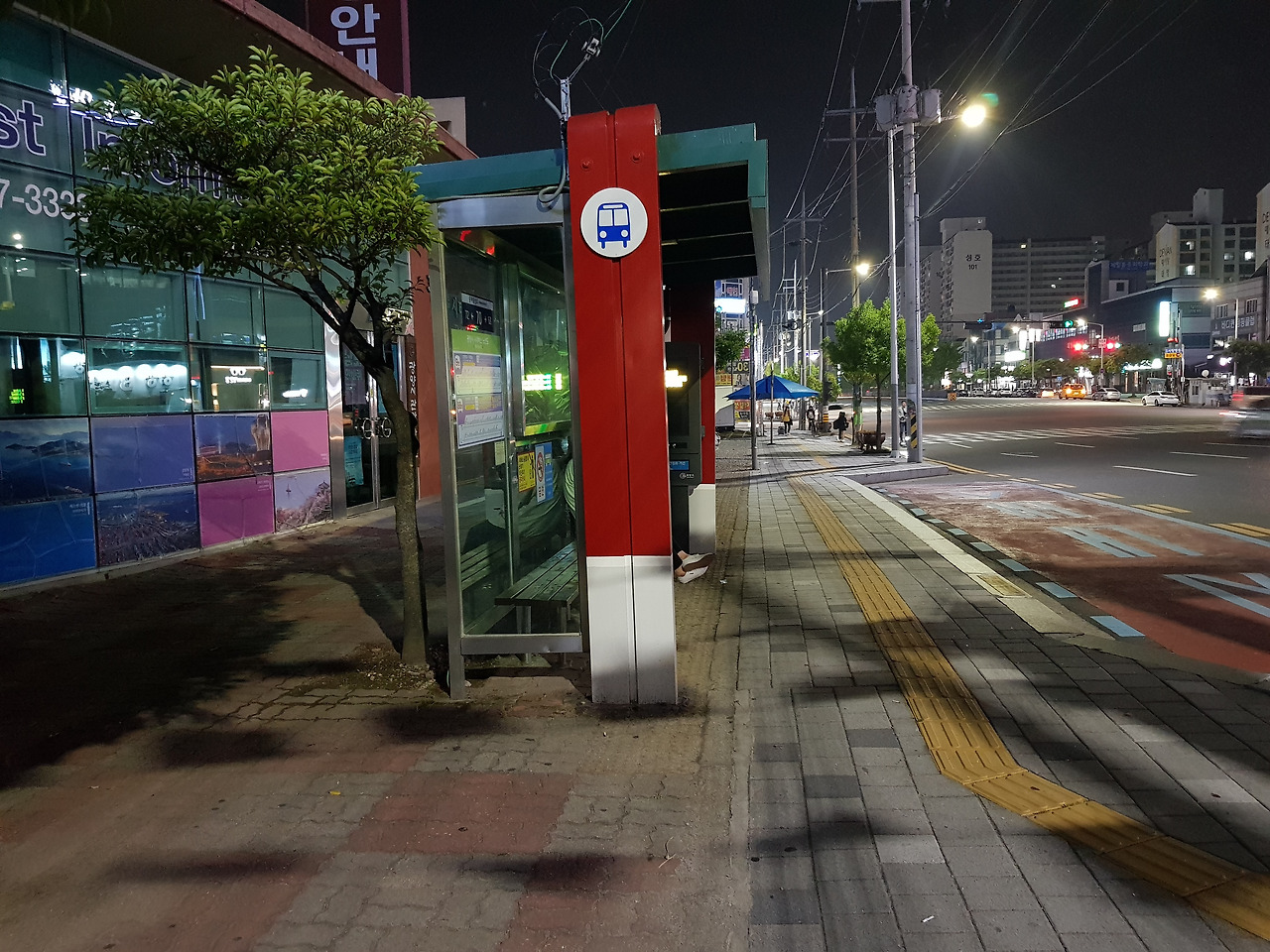 버스정류장에 앉아 버스 기다립니다.