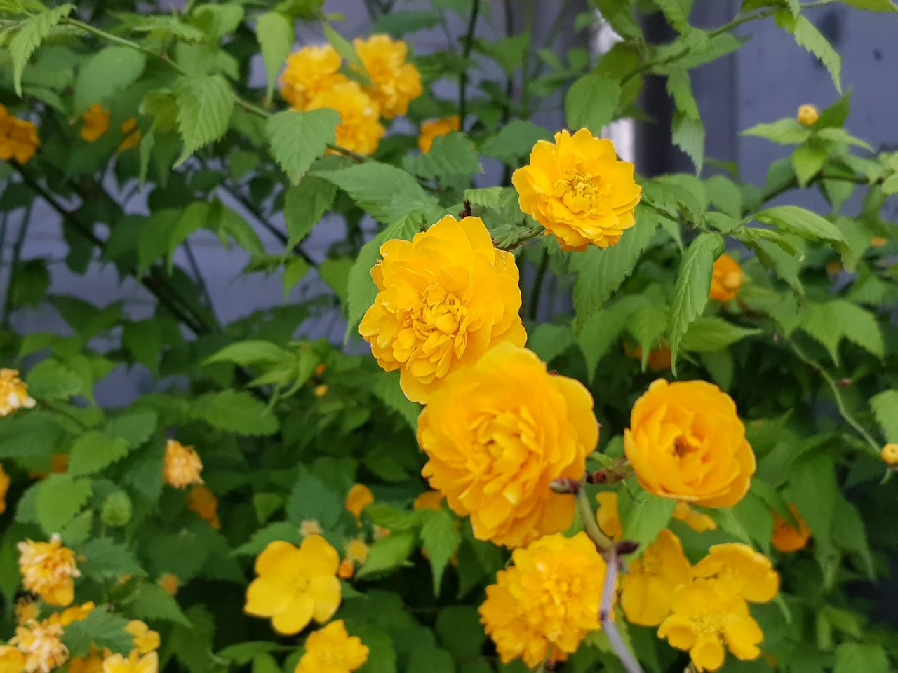 개나리는 아니지만...노오란 꽃잎이 겹겹이 펼쳐진 샛노오란 꽃이 바람이 흔들리고 있었다.