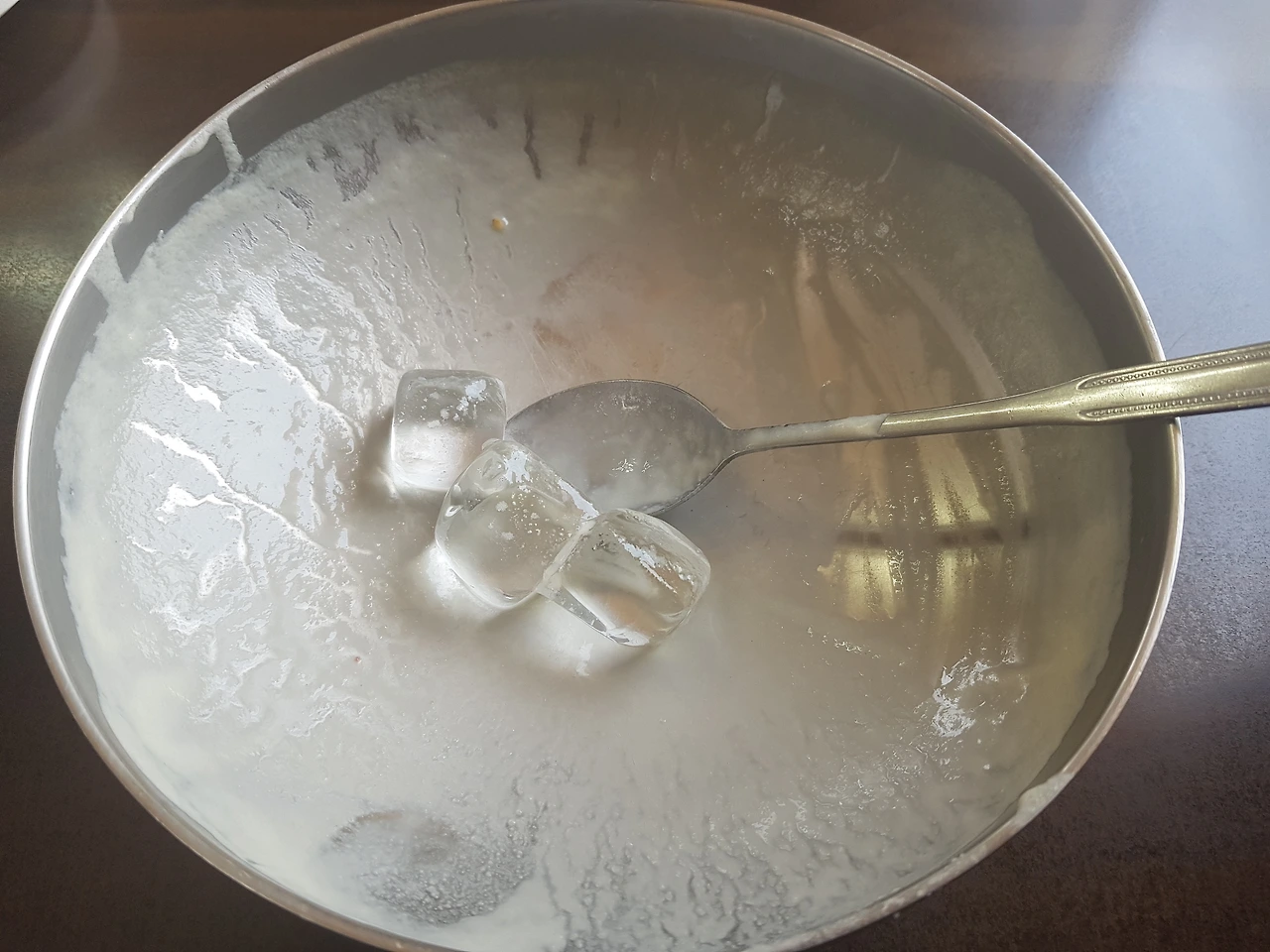 조금 더 뜨거워지면 얼음은 먹는 동안 다 녹는다. 그러면 처음의 걸쭉한 콩국물은 딱 마시기 좋은 농도가 되고, 이 국물을 다 마심으로 인해 더위는 사라지고 새 기운은 몸안에 가득 차 오른다.
