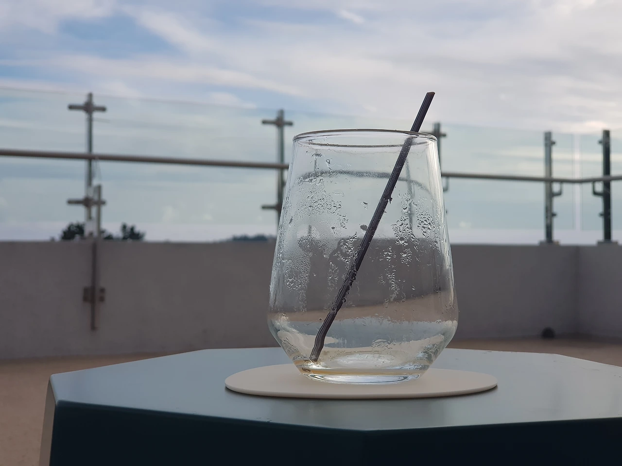 커피를 담은 유리잔에 담긴 얼음 알갱이들마저
