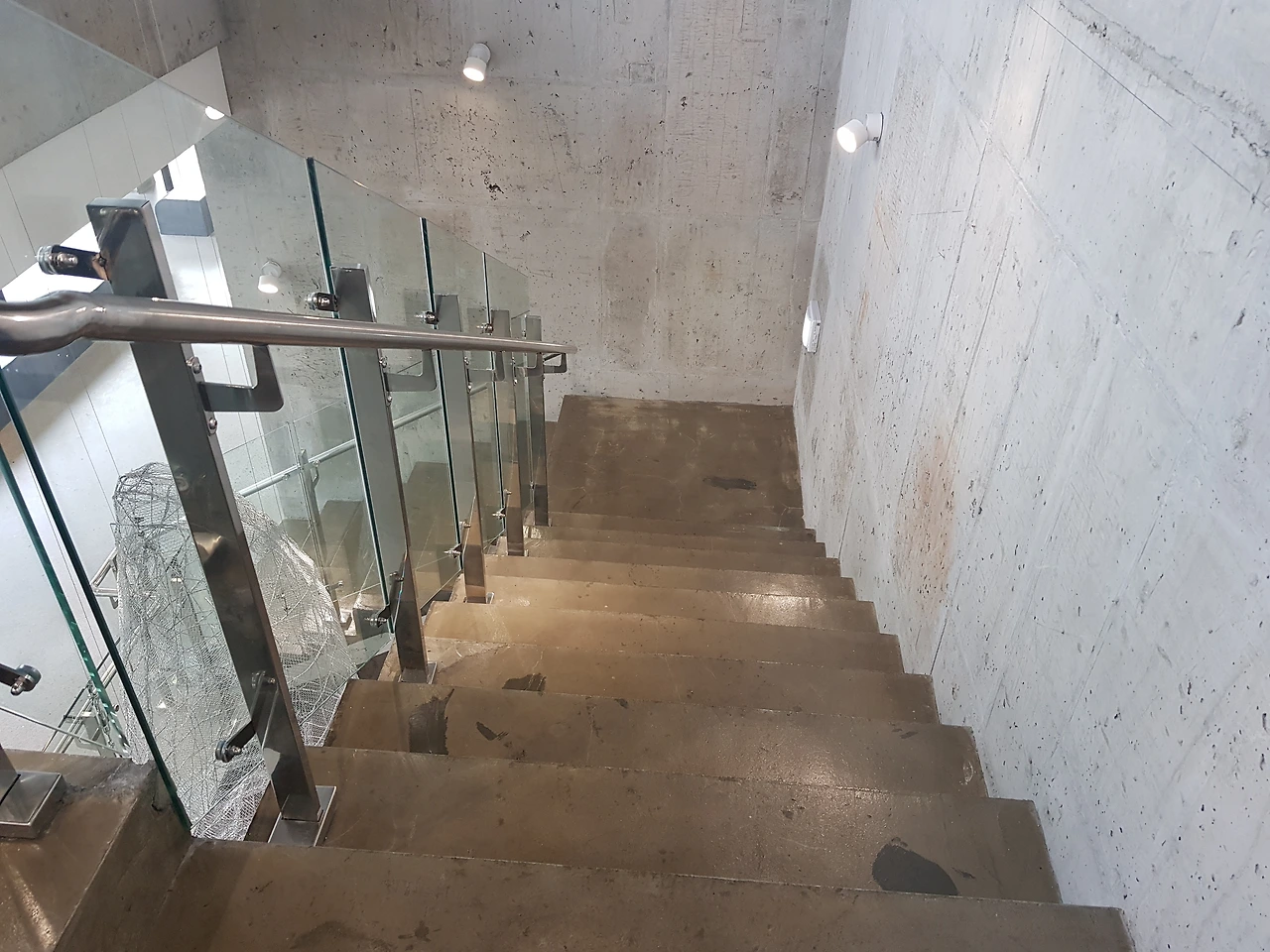 계단은 거친 느낌의 시멘트 벽체와 바닥 위에 투명 에폭시를 입혔다. 모던 스타일이라는 건가!