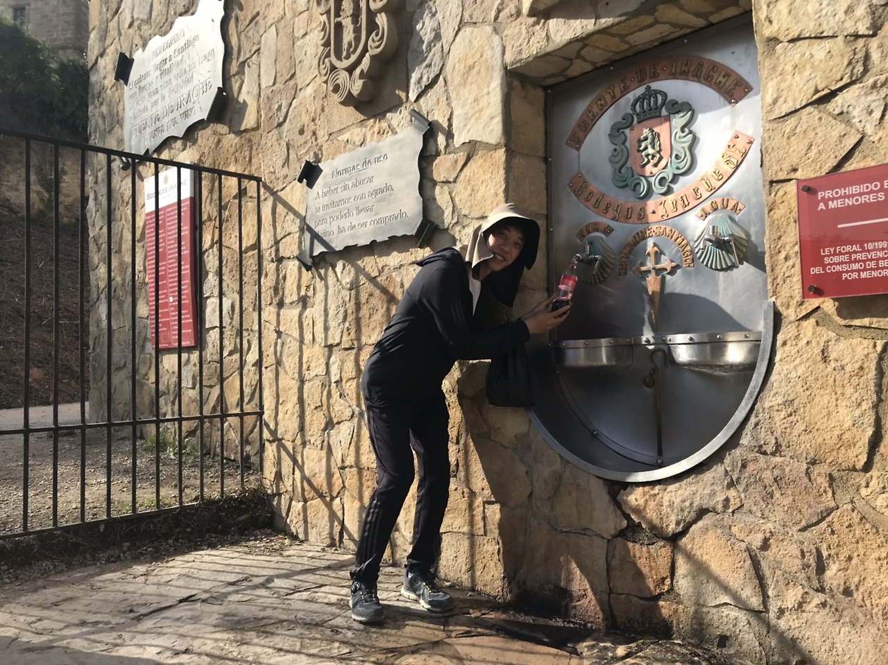 프랑스길을 걷다보면 공짜로 와인을 먹을 수 있는 곳이 딱 한 곳 있다. 오늘이 바로 그곳을 지난다. 오늘 걸으면서 와인을 얼마나 많이 먹느냐에 따라 목적지가 달라지게 된다ㅋㅋㅋㅋ. 어제 같이 저녁을 먹었던 Mark와 한국인 형 모두 페트병에 물 대신 와인으로 가득 채워 갈거라고 했다. 한 2시간쯤 걸었을까. 수도꼭지에서 물 대신 와인이 나오는 장소에 도착했다.