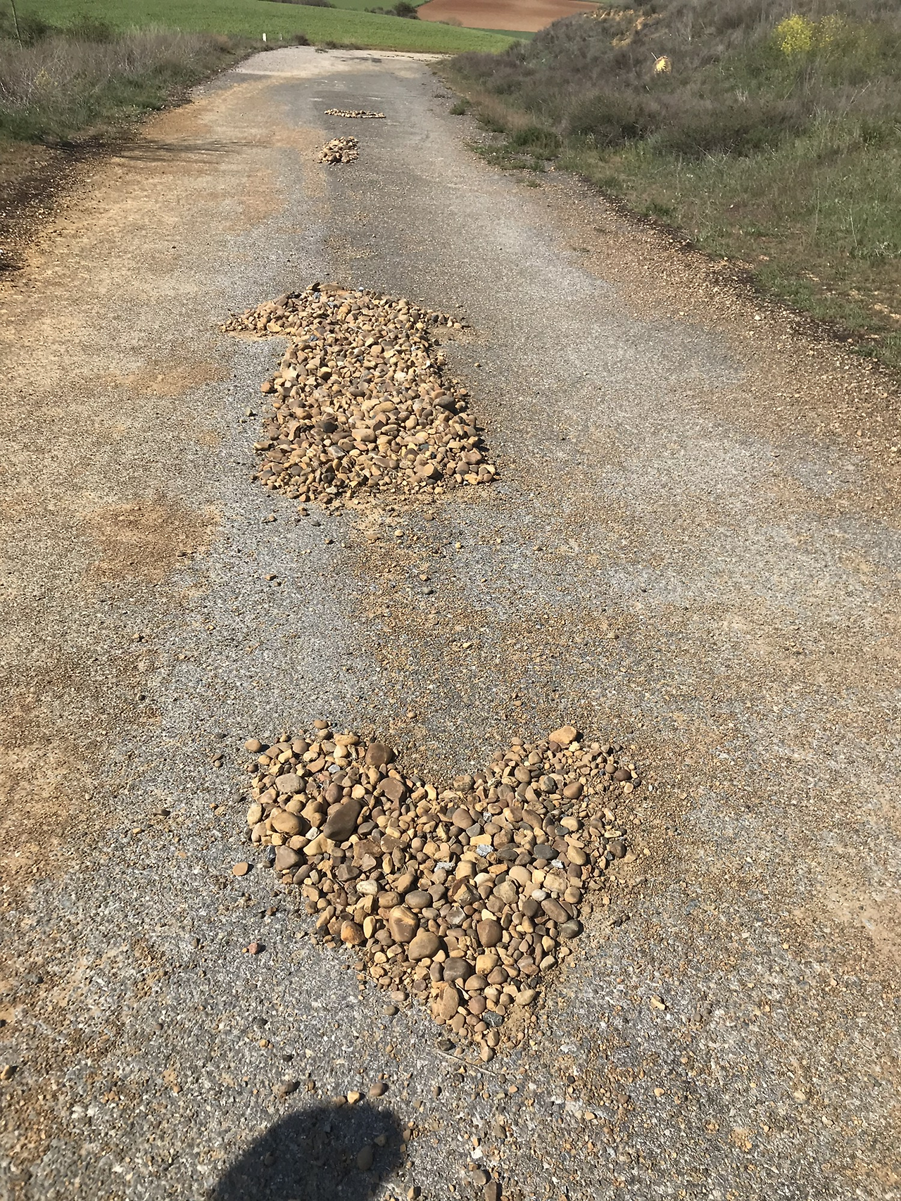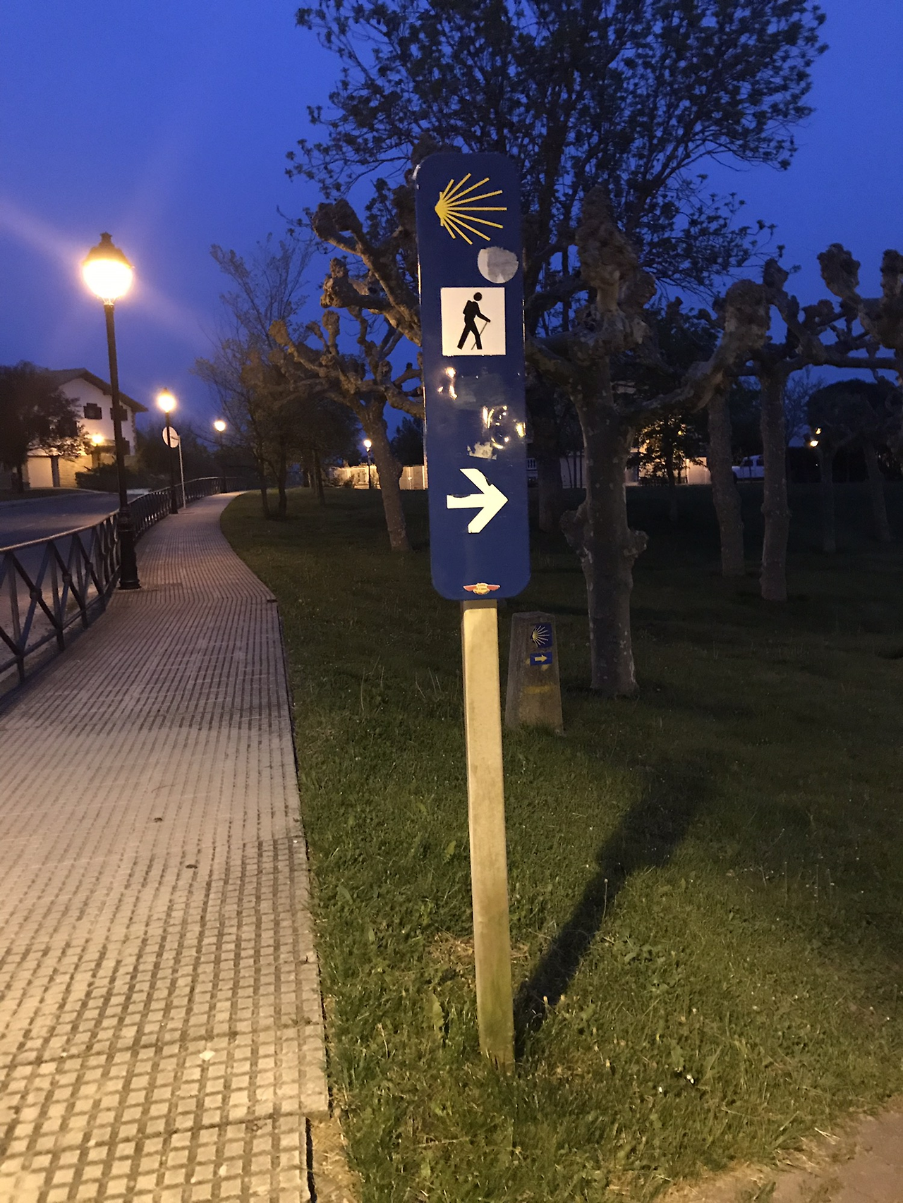 한 시간쯤 걷다가 두 갈래 길이 나왔는데 노란색 화살표가 없었다. 내 앞에는 사람이 안 보여 어디로 가야 할지 망설여했는데 내 뒤의 외국인들은 왼쪽으로 갔다. 잠시 고민하다가 오른쪽 저 멀리에 노란 화살표가 있는 것 같아 오른쪽으로 갔다. 걷다가 뒤를 돌아보니 저 멀리 수많은 사람들이 나를 따라오고 있었다. 다행히 조금 걷다가 노란색 화살표를 볼 수 있었다.